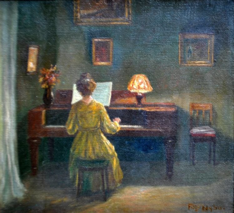 Friis Nybo, Poul (1869 - 1929) Dänemark: Frau spielt Klavier.