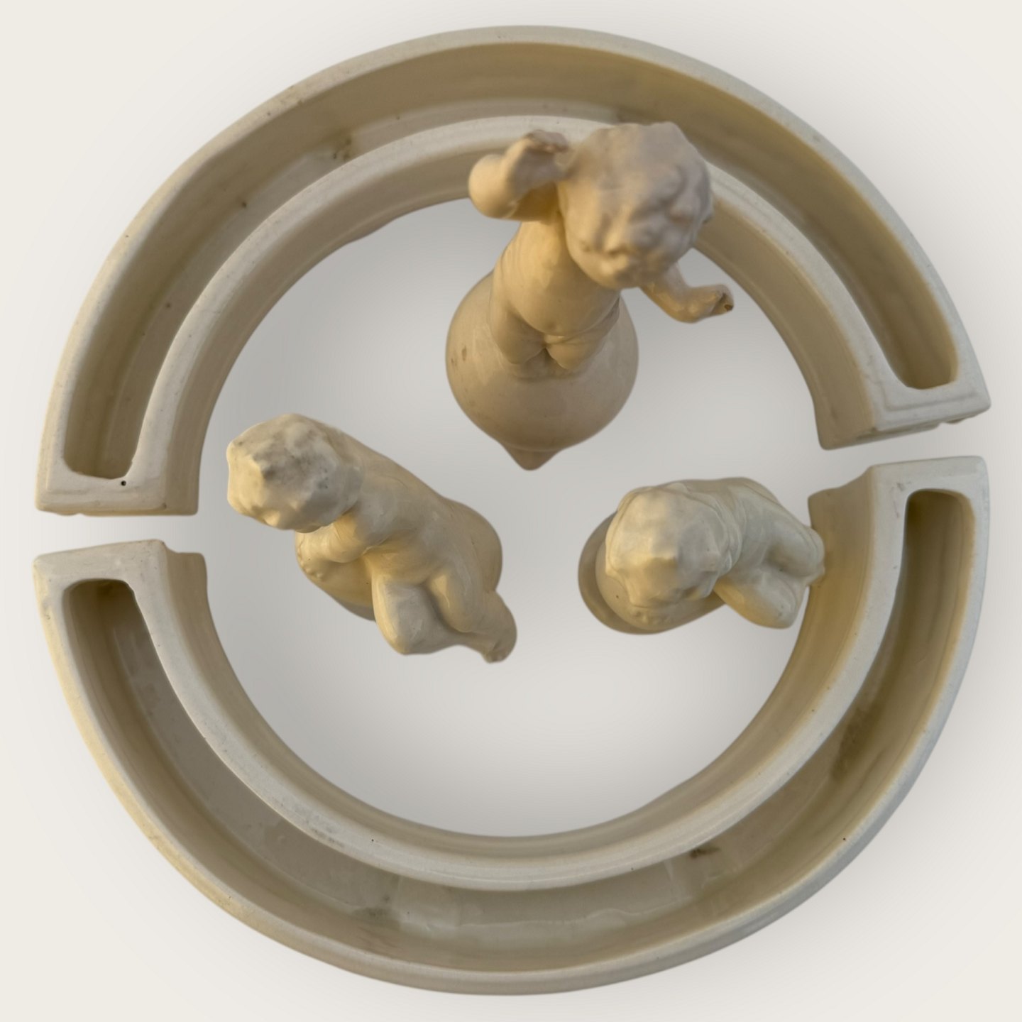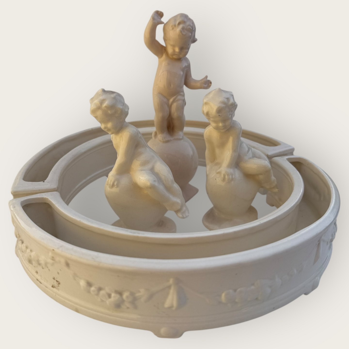 Tischdekoration, Fayence-Tischbild mit Figuren, cremeweiße Fayence, *Guter gebrauchter Zustand, mit einigen sehr kleinen Abplatzungen*