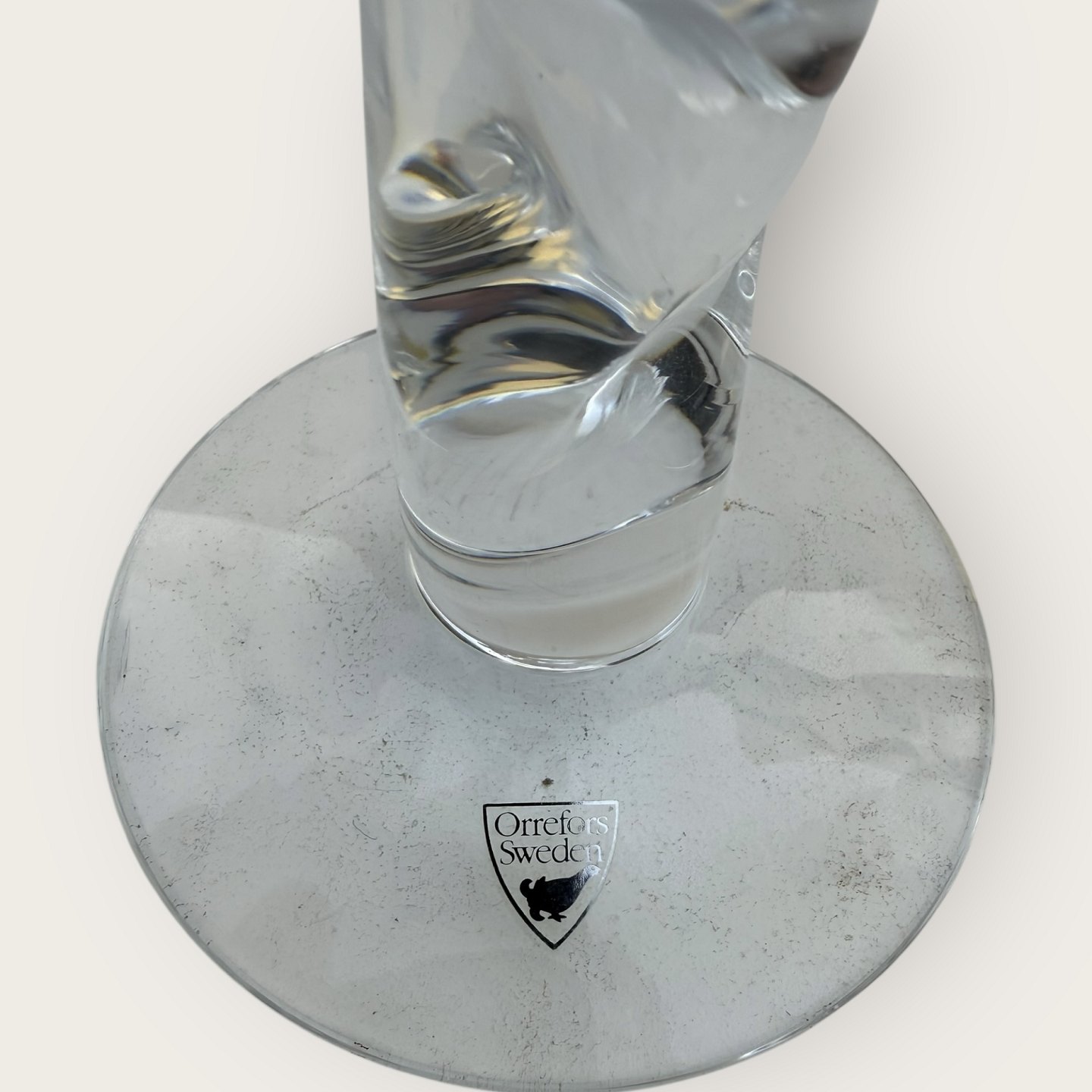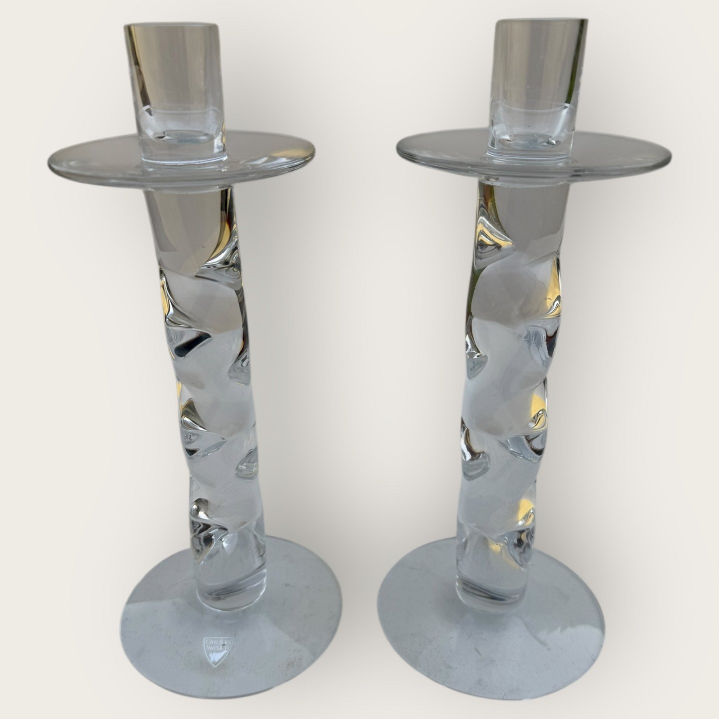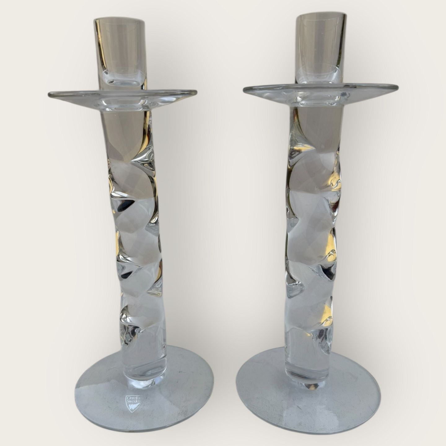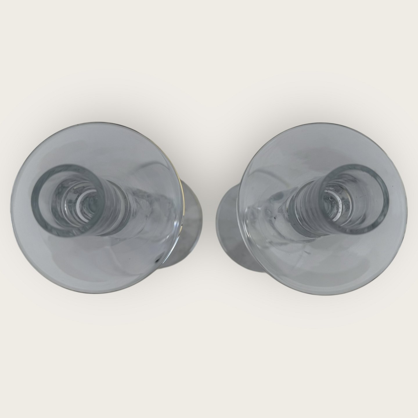 Orrefors, Schweden, ein Set gläserner Kerzenständer, Höhe 24 cm, Bodendurchmesser 10 cm * guter Zustand *