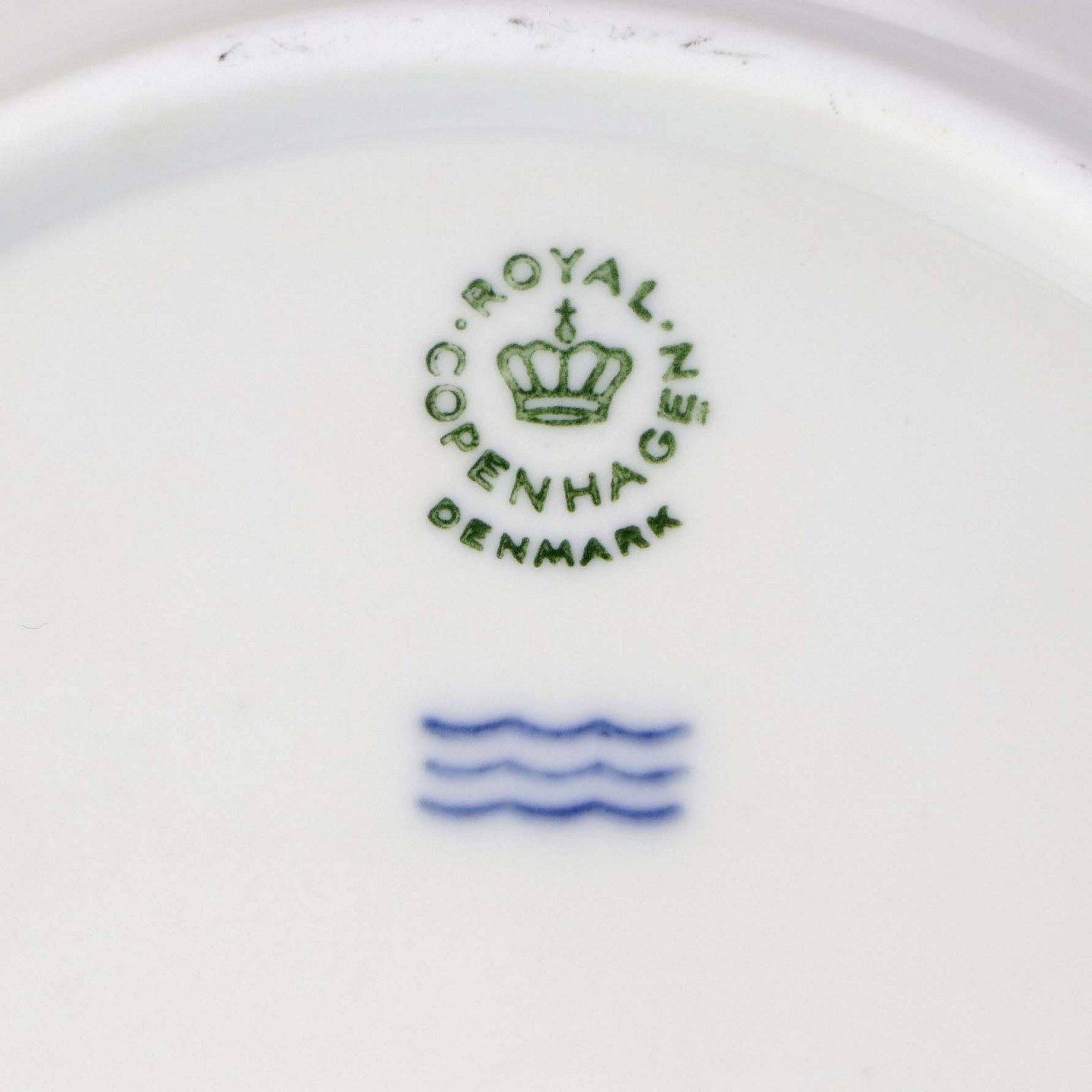 Fremstår med enkelte små brune pletter på bagsiden af tallerknen.