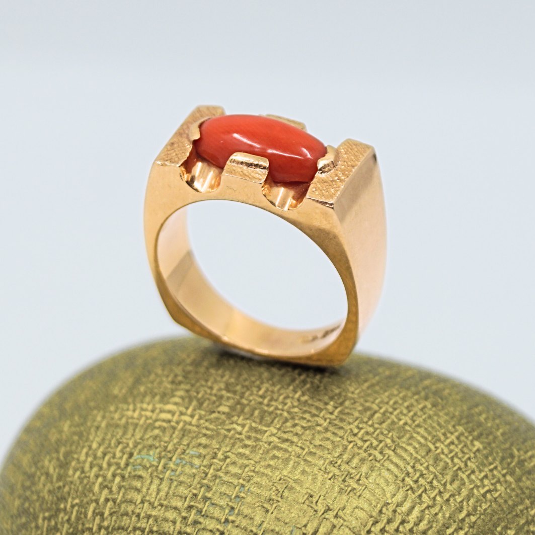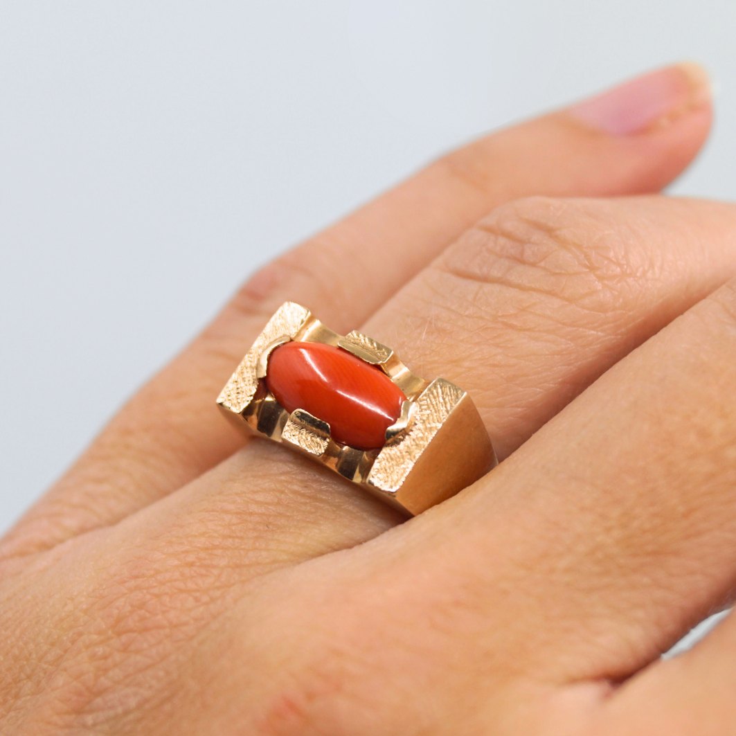 Ring i 14 kt. guld med koral