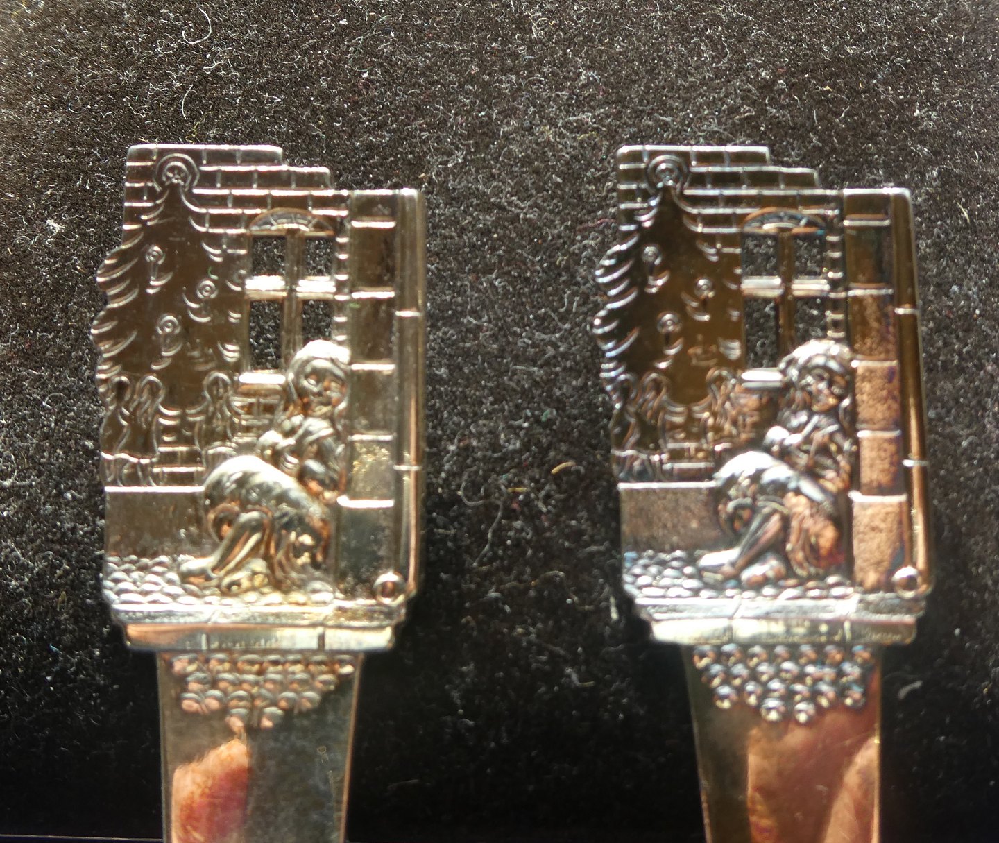 Märchen dänisch Kinderbesteck Taufbesteck in drei Türme vergoldetem Silber mit Das kleine Mädchen mit den Schwefelhölzern.
