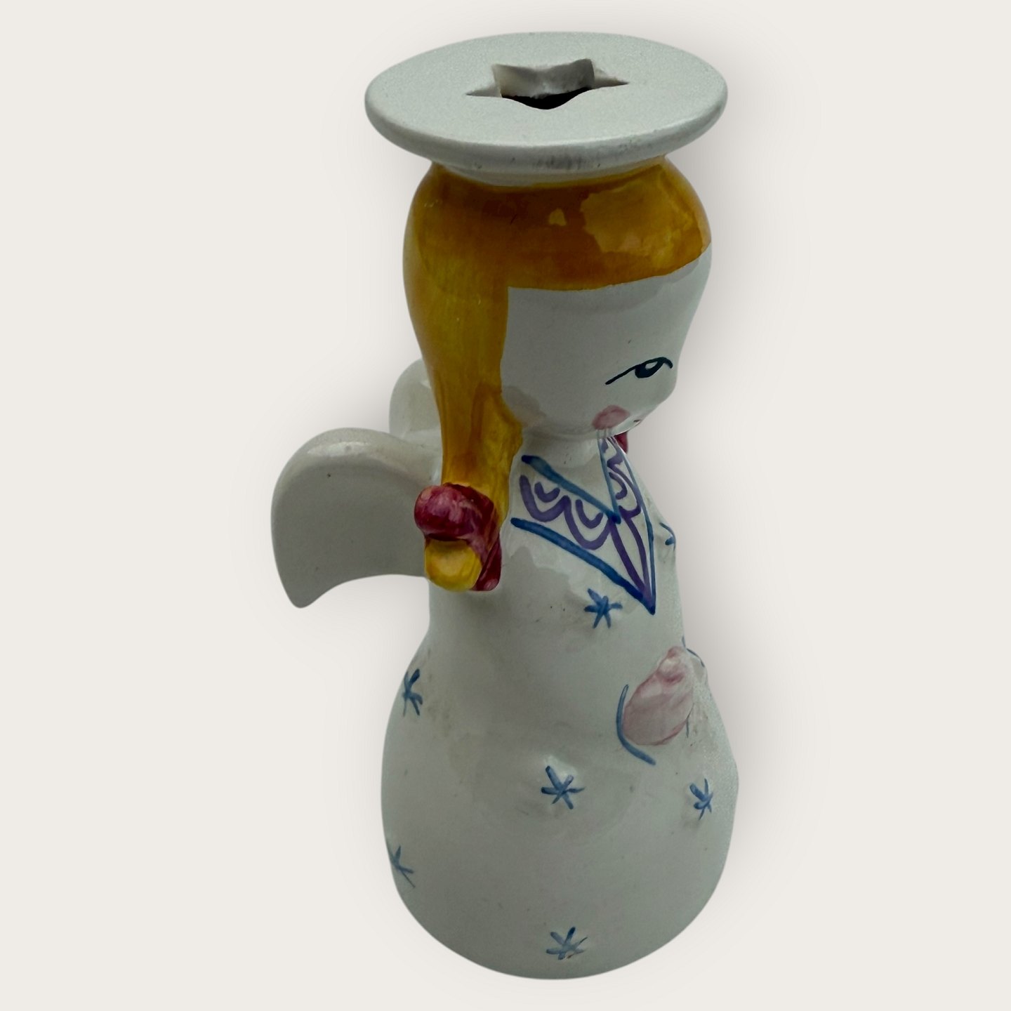 Nymølle-Keramik, Weihnachtsengel, Kerzenständer, 5 cm Durchmesser, 12 cm hoch *Guter Zustand*