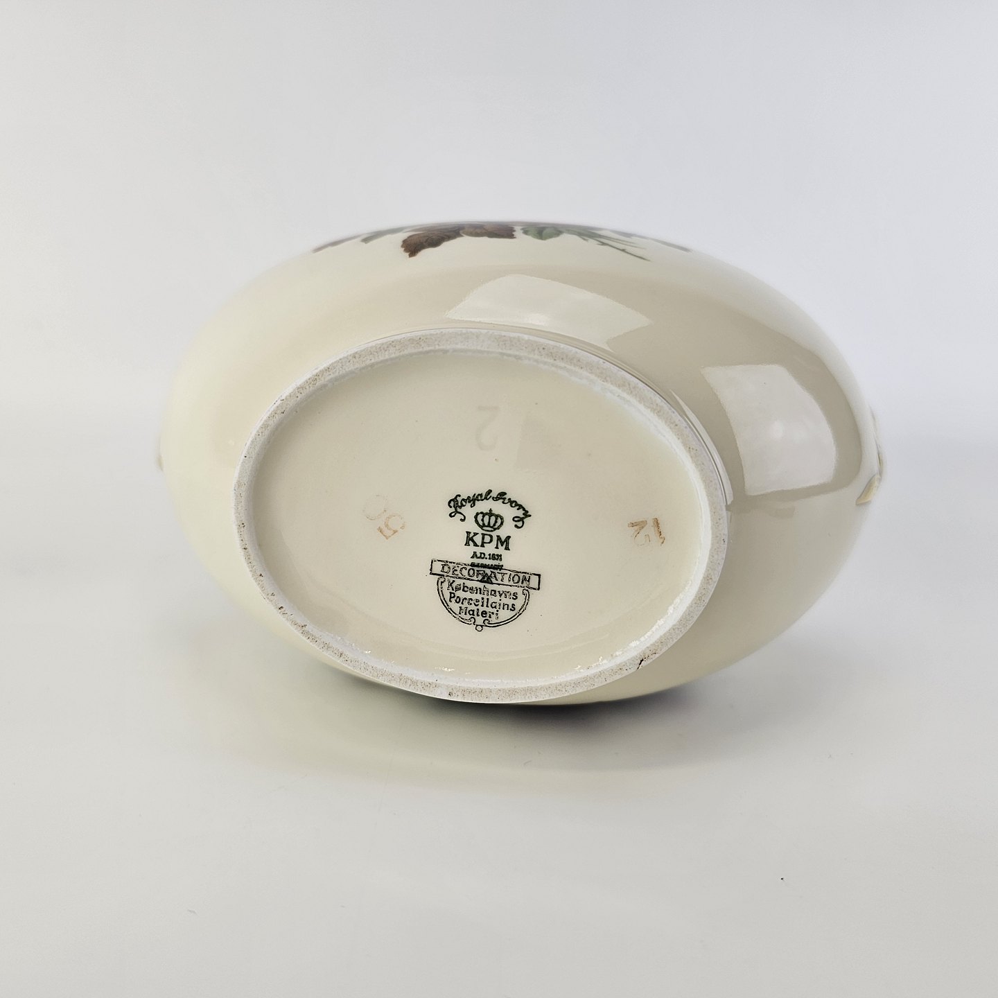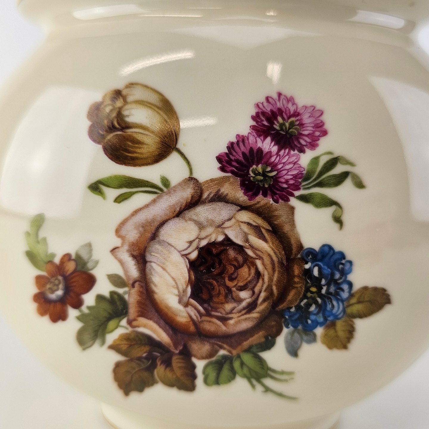 Rosenborg oval vase i cremefarvet porcelæn med guldkant og blomstermotiv