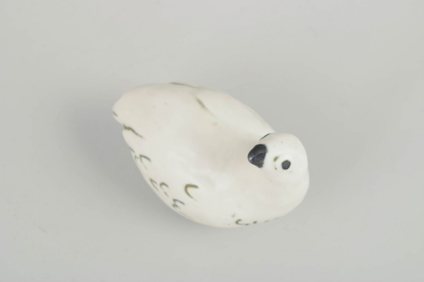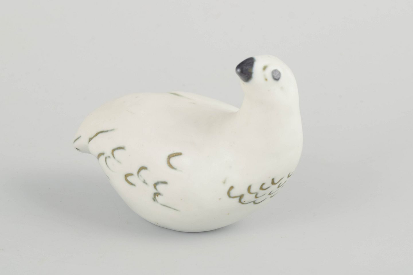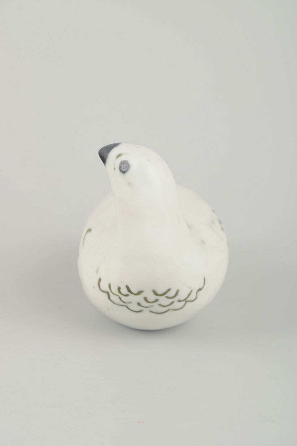 Skulpturel fuglefigur i glaseret stentøj, formet med bløde linjer og enkel dekor i grønne og sorte penselstrøg. Typisk for Allerts organiske formsprog og naturinspirerede udtryk.