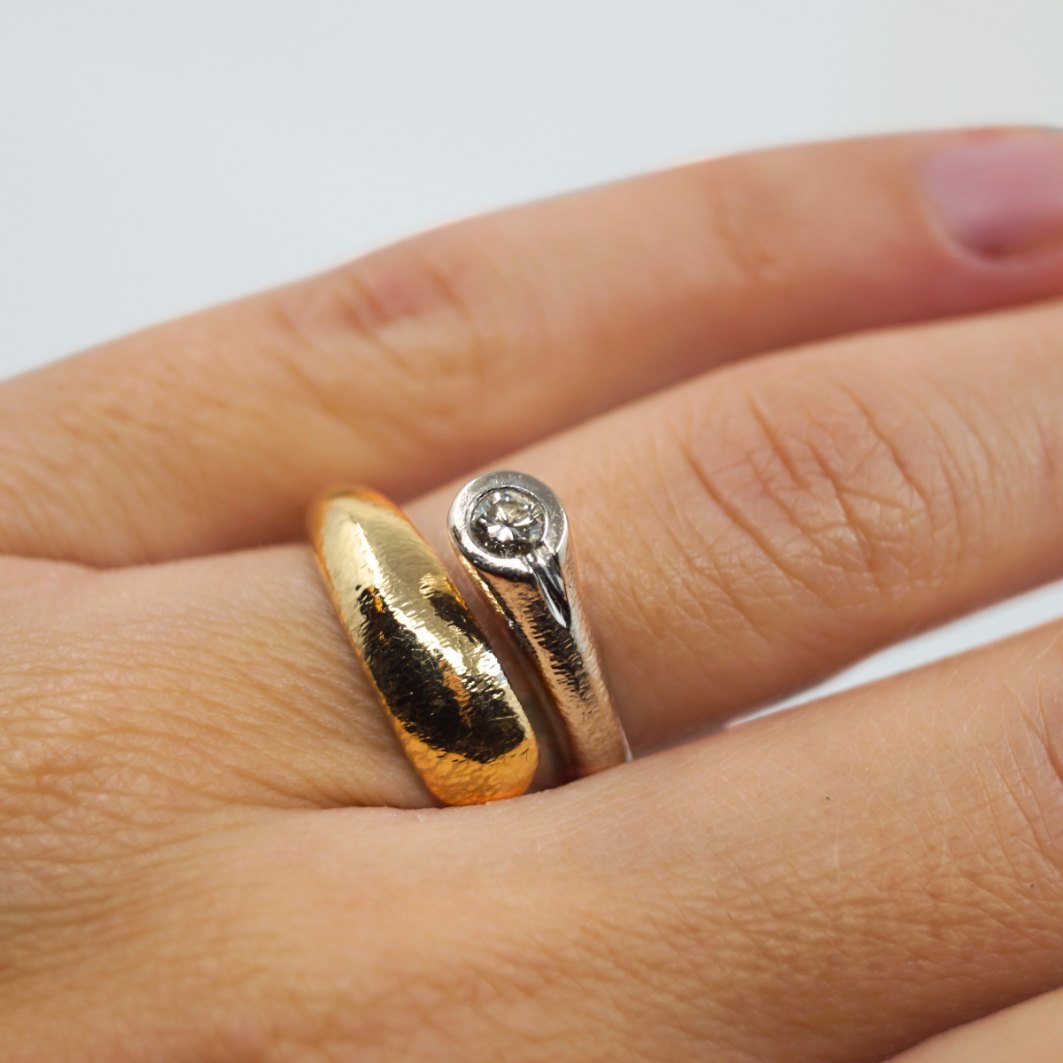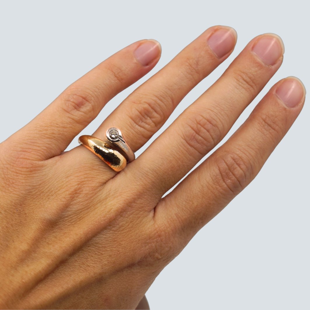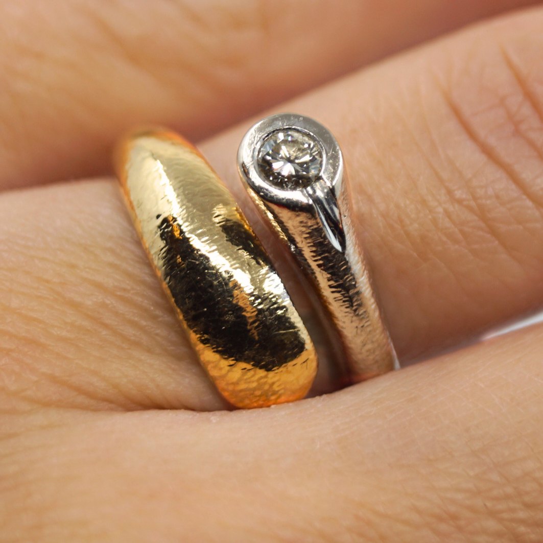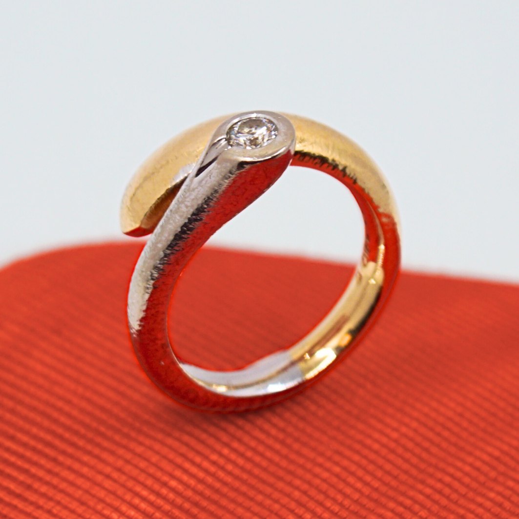 Ole Lynggaard ring af 14 kt. guld og hvidguld. Med diamant, 0.15 ct.