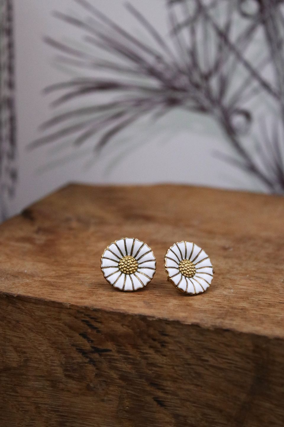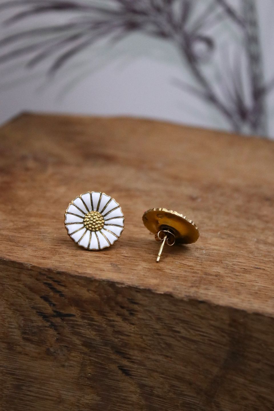 Et par gamle Georg Jensen Marguerit / Daisy ørenringe med øreskik i sterling sølv og hvid emalje. (825 S) Dia.:1,7cm.