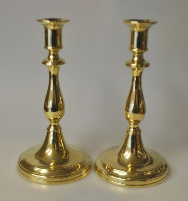 Paar dänische antike Messingleuchter, 19. Jahrhundert. Balusterförmiger Schaft. Höhe: 20 cm.