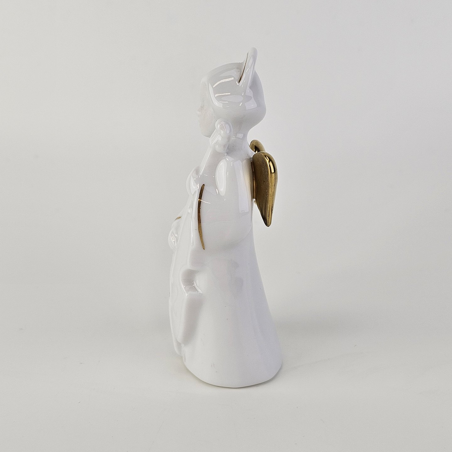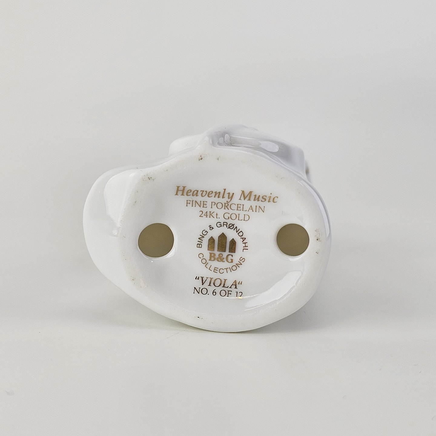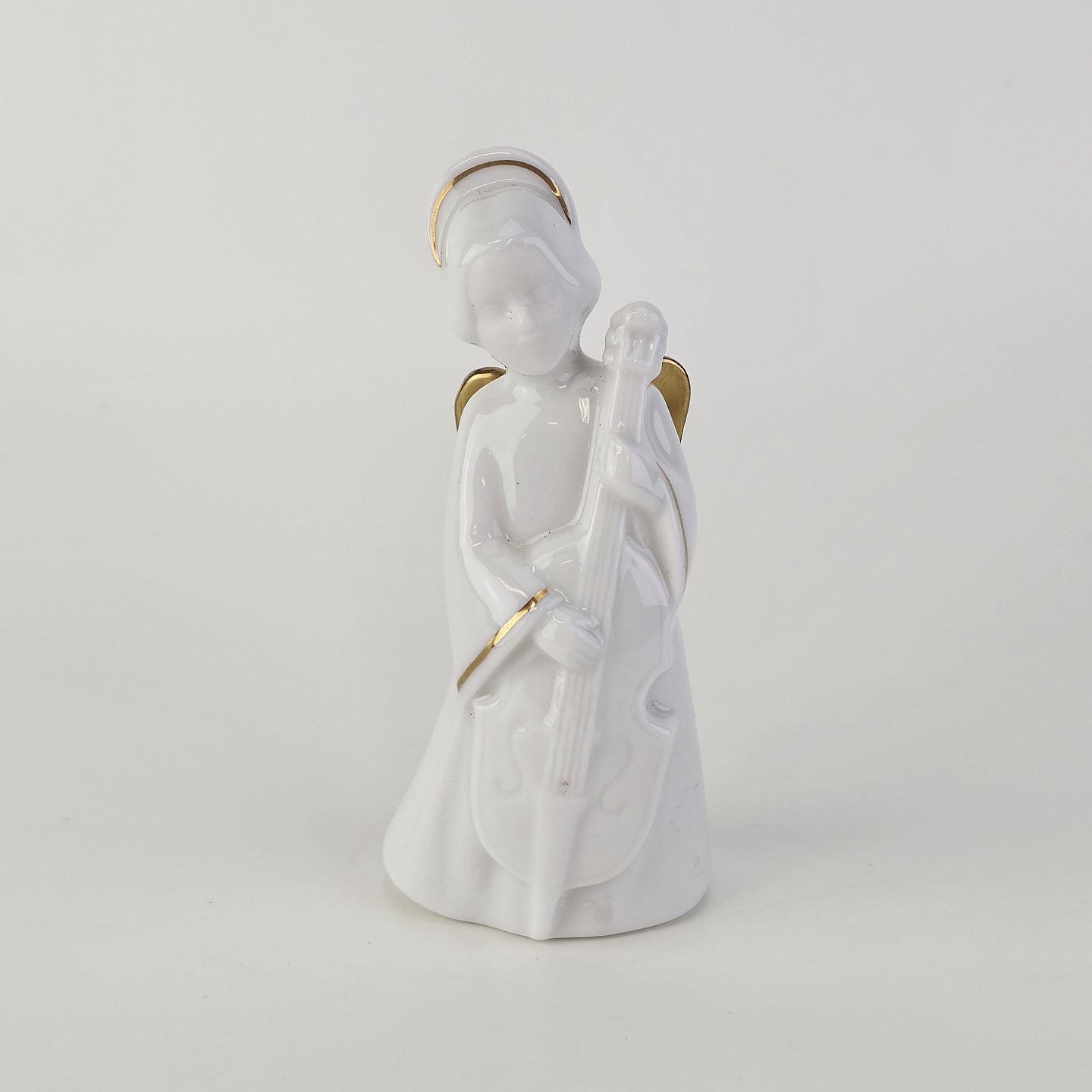 Text zugänglich auf Dänische: Figur med motiv af en engel som spiller på viola. Figuren er i hvidt porcelæn med forgyldte vinger og detaljer i 24 karat guld.