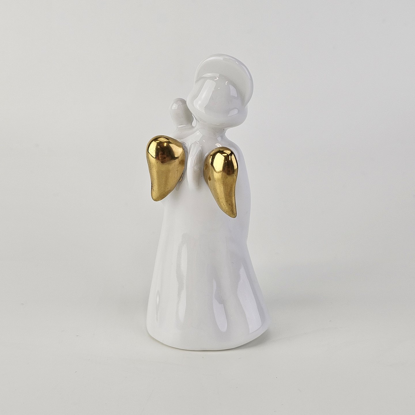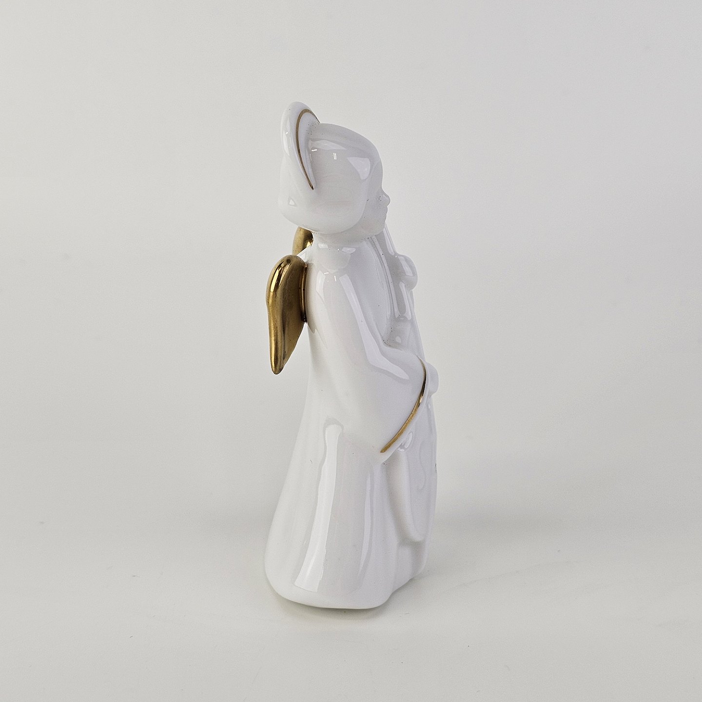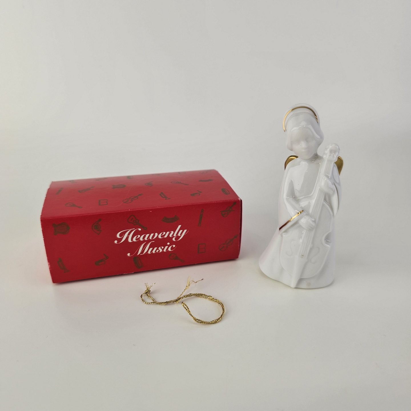 Text zugänglich auf Dänische: Figur med motiv af en engel som spiller på viola. Figuren er i hvidt porcelæn med forgyldte vinger og detaljer i 24 karat guld.