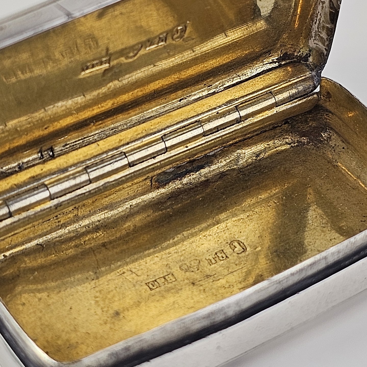 Pilleæske i sterling sølv med bladmotiv, indgraveret G.S.M.