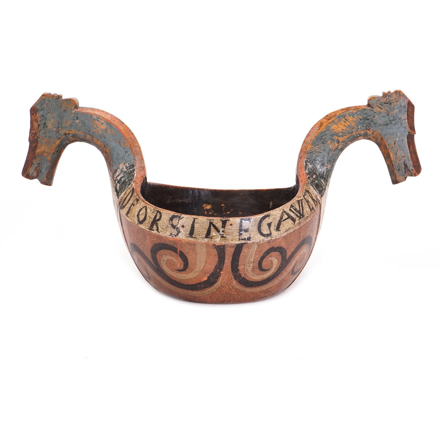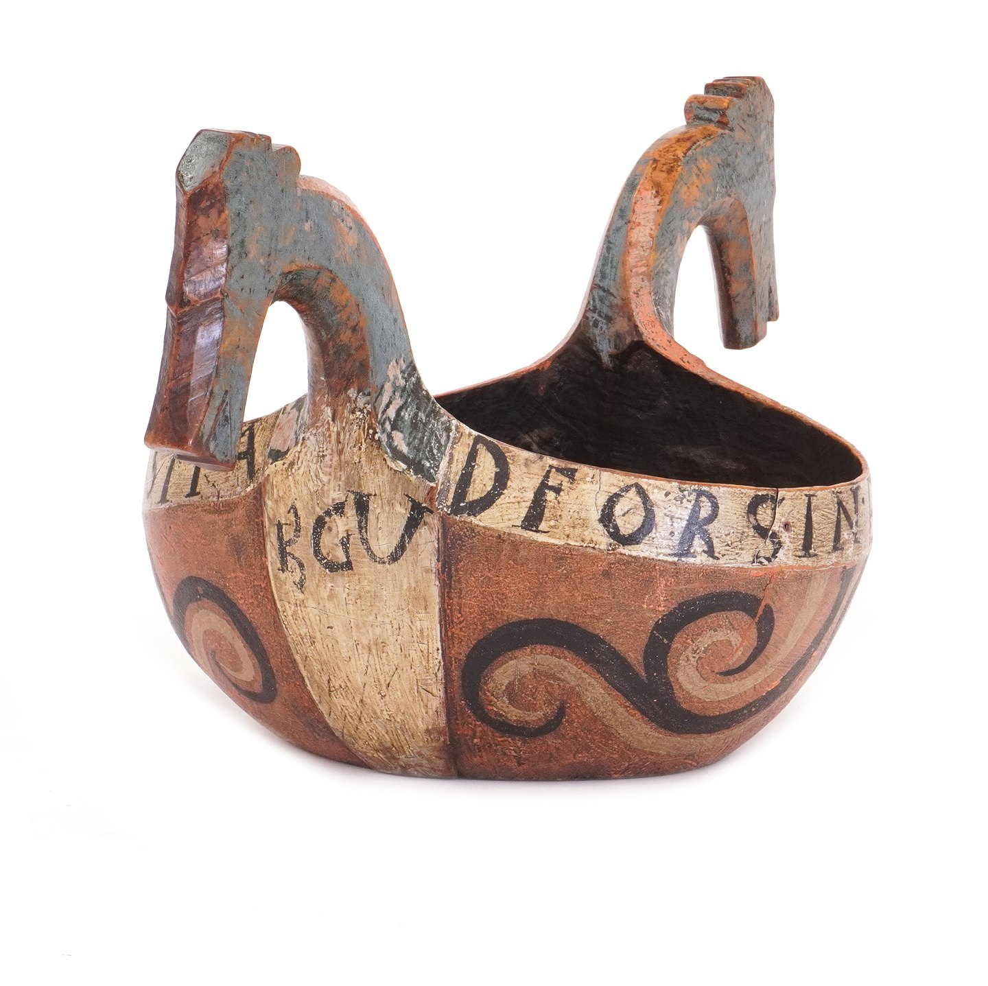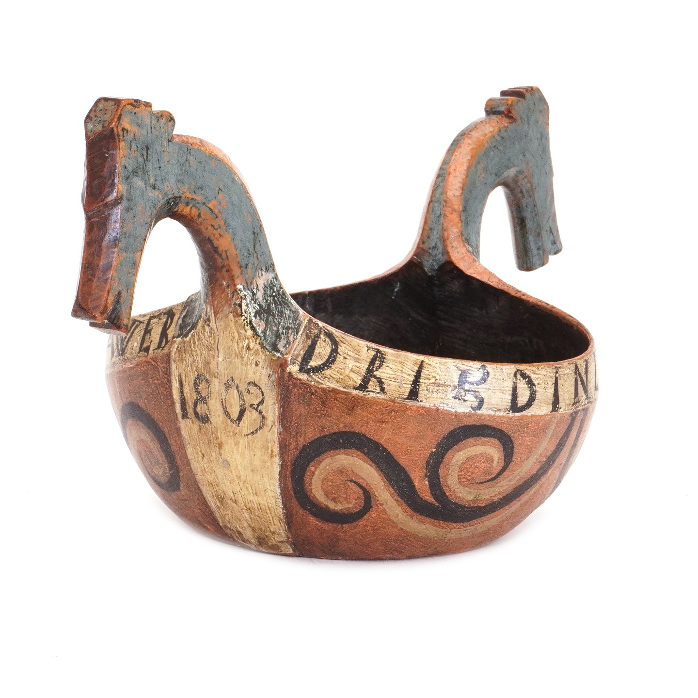 Norwegische Trinkschale datiert 1803. H: 21cm. L: 41cm