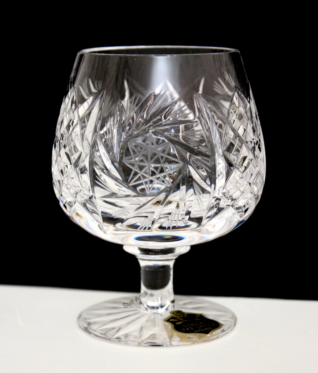Text zugänglich auf Dänische: Lyngby glasværk, Granada, Cognac. Mundblæst og håndslebet 24 % Bøhmisk blykrystal med slibninger på kumme, slebet stilk og stjerneslebet fod. Importeret fra Tjekkiet i 1970'erne og solgt via Lyngby glasværk.