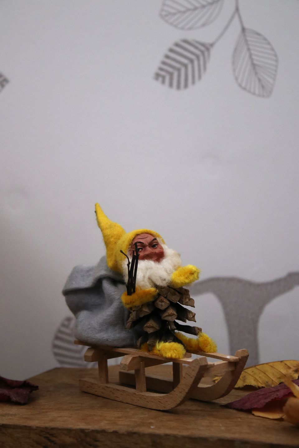 Gammel nisse på trækælk.