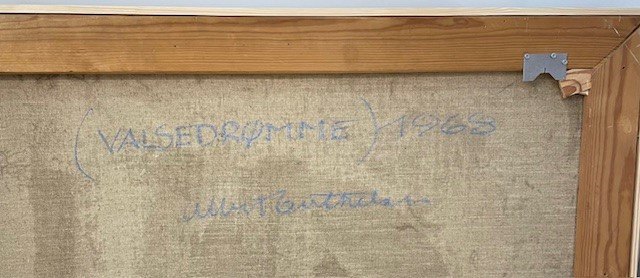 Text zugänglich auf Dänische: Valsedrømmen" Stort flot oliemaleri i ny naturramme. Maleriet har netop blevet renset hos professionel konservator. Maleriet har Bl.a. været udstillet på Vejle Kunstmuseum.