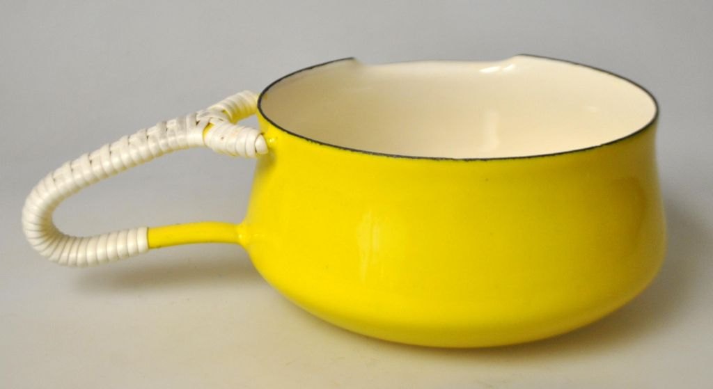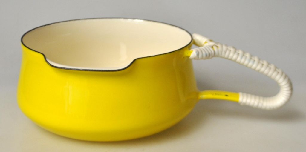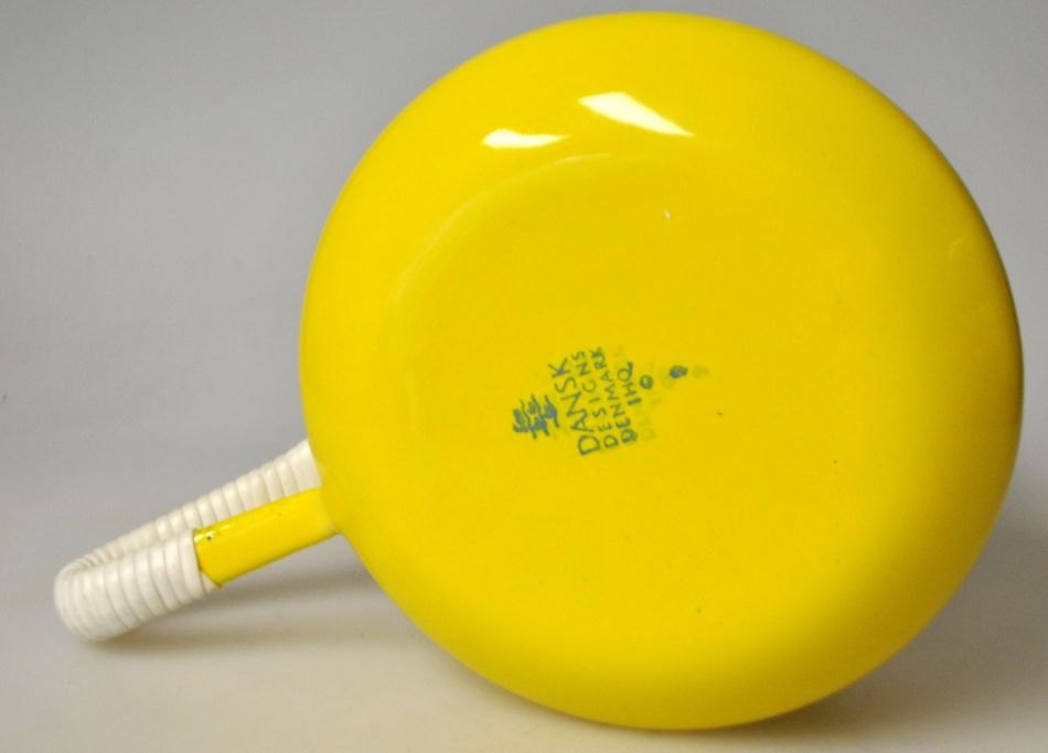 Quistgaard, Jens Harald (1919 - 2008) Dänemark: Butterkanne. Koben-Stil. Gelbe Emaille. Gestempelt. L.: 18 cm. Durchmesser: 11,5 cm.