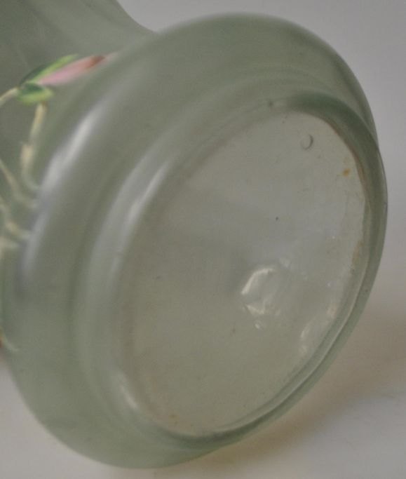 Biskuiteimer, hellgrünes Glas mit Emaillemalereien, Jugendstil, um 1900, Deutschland.