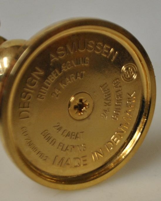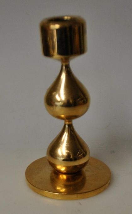 Asmussen Tropfenkerzenständer, 20. Jahrhundert. Middelfart. Dänemark. Vergoldetes Messing. Gestempelt. Höhe: 12 cm. Mit zwei Tropfen.