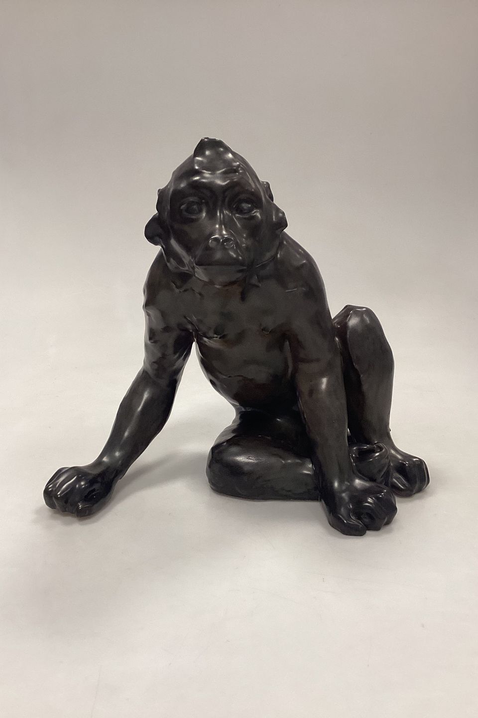 Bing og Grøndahl Jean René Gauguin Figur af Abe No. 90 eller C123. Stentøj med brun/grøn glasur. Signeret JR Gaugain.