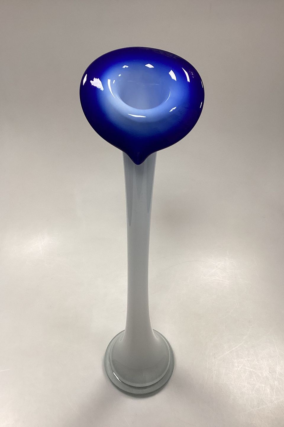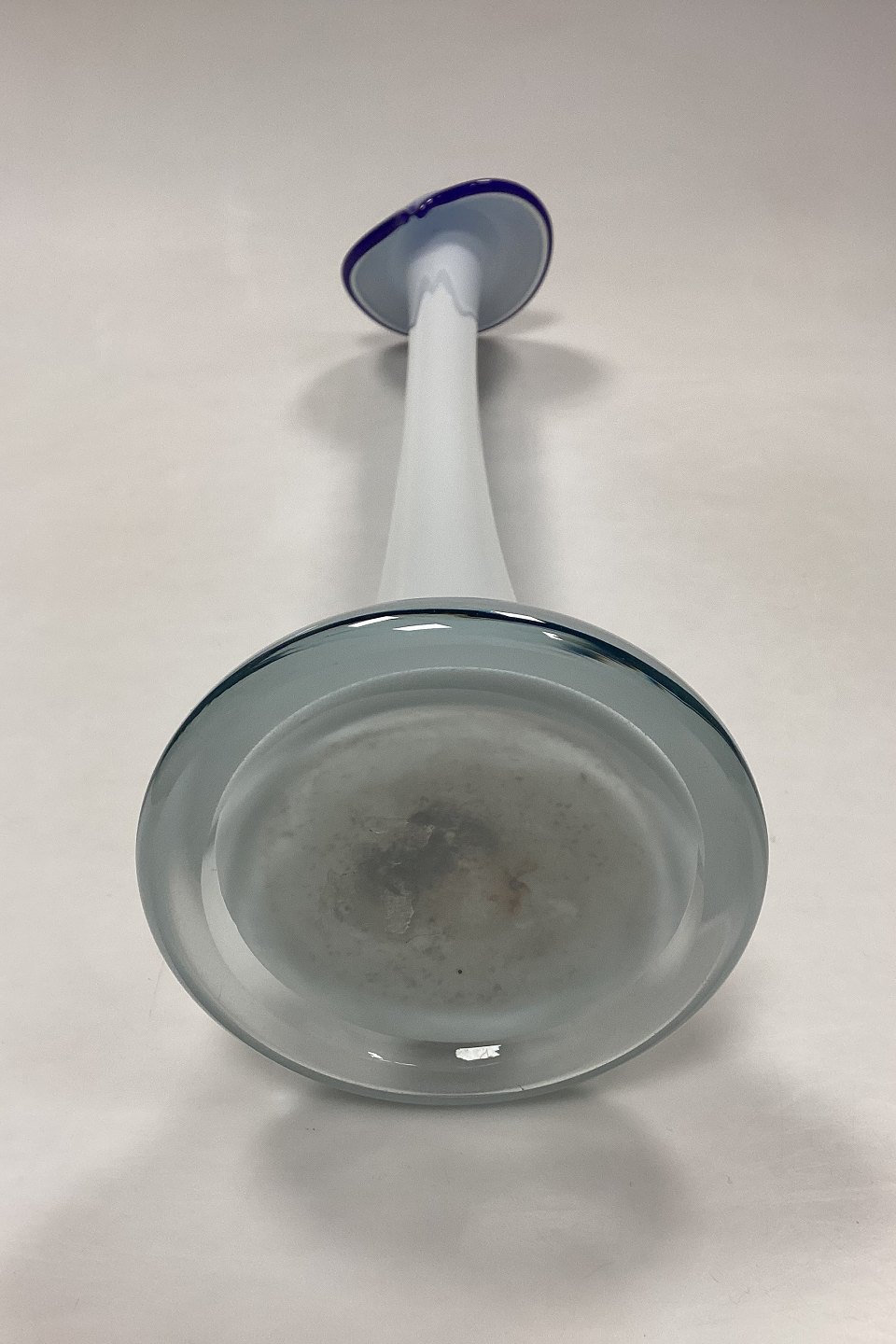 Joska Design Vase i Krystalglas. Opalhvid krop med koboltblå åbning. Mundblæst. Designet i 1980´erne af Joska Design Silberberg Kristall Bavaria, West Deutschland.