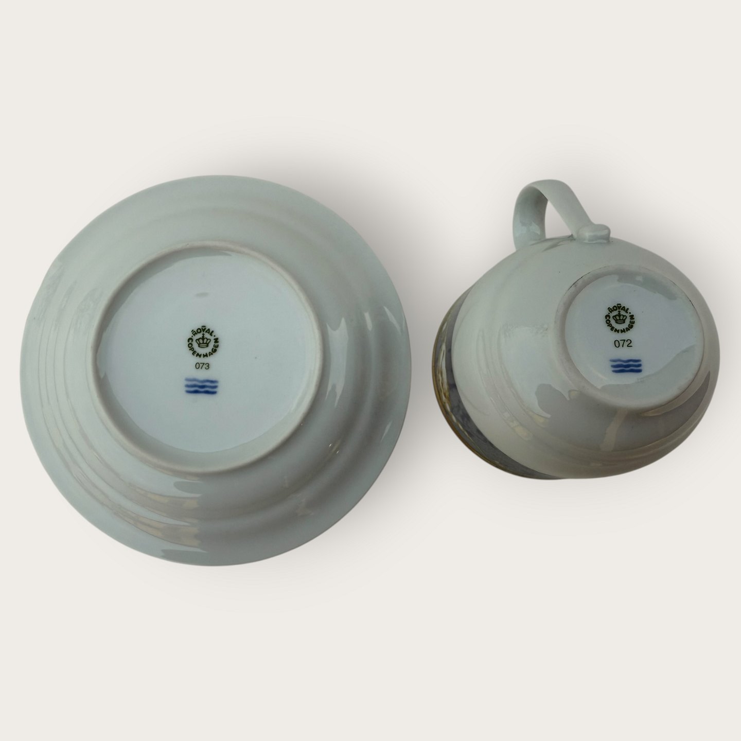 | Royal Copenhagen, Grey Magnolia, Kaffeetasse, Nr. 072 0g 073 (Untertasse), 1. Wahl, Tasse 8 cm Durchmesser, 6 cm hoch, Untertasse 14,5 cm Durchmesser, Design Flemming Eskildsen *perfekter Zustand*