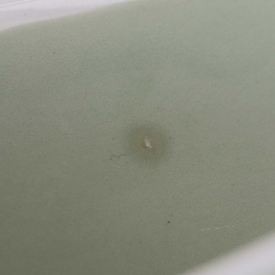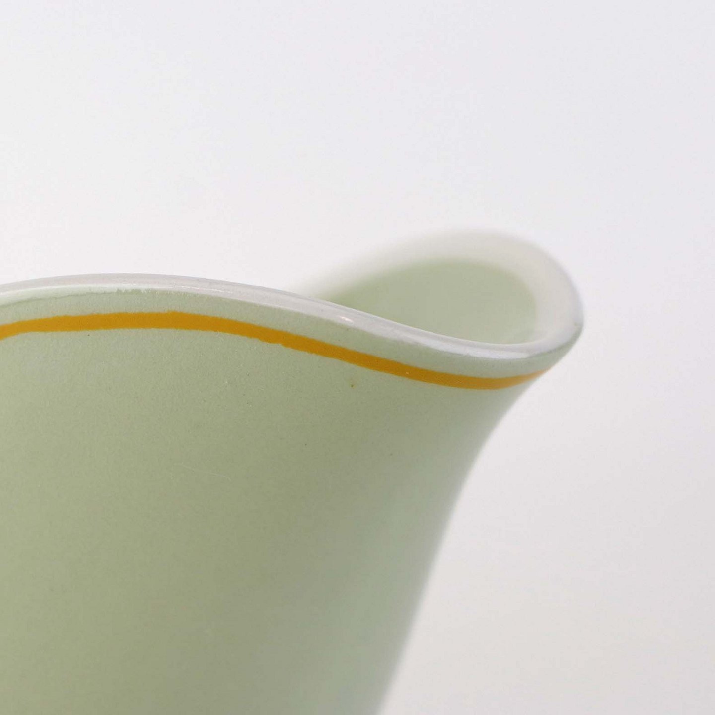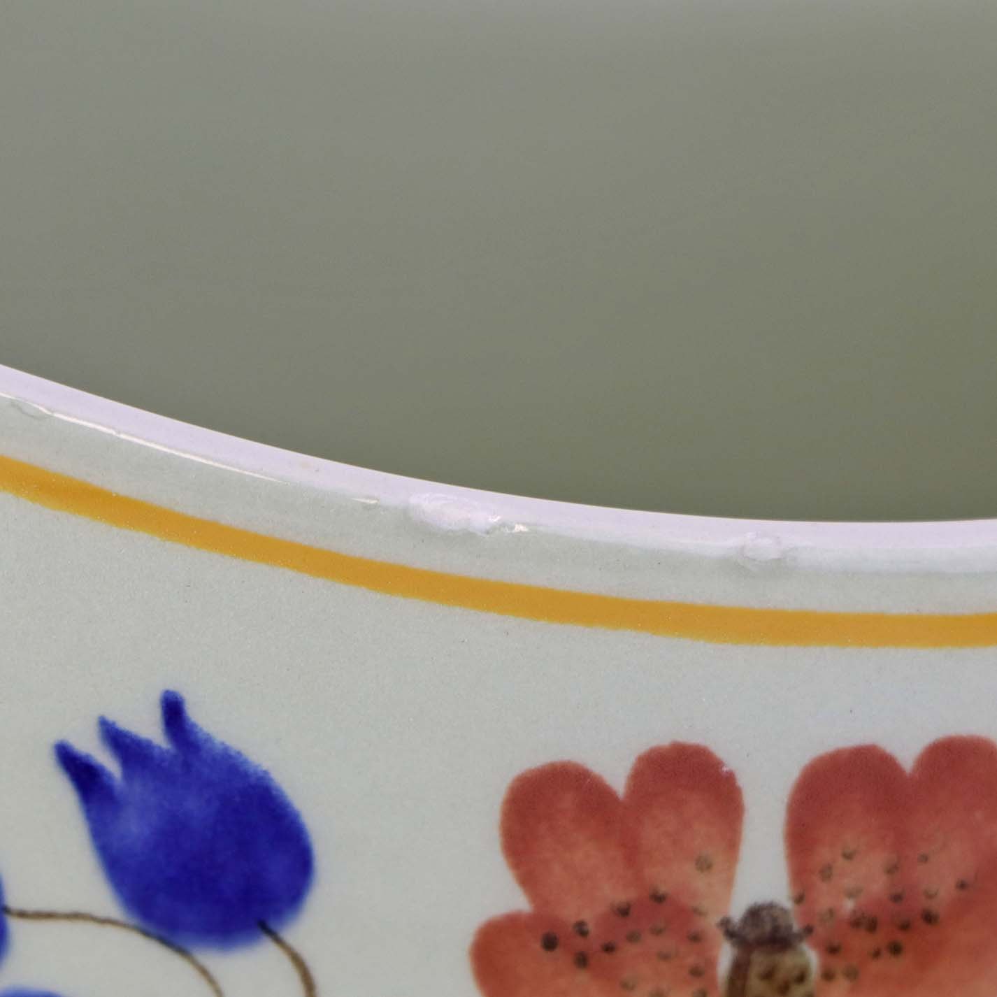 Fremstår med ujævnhed i glasuren på indvendigside og brugsspor ved topkanten og hanken