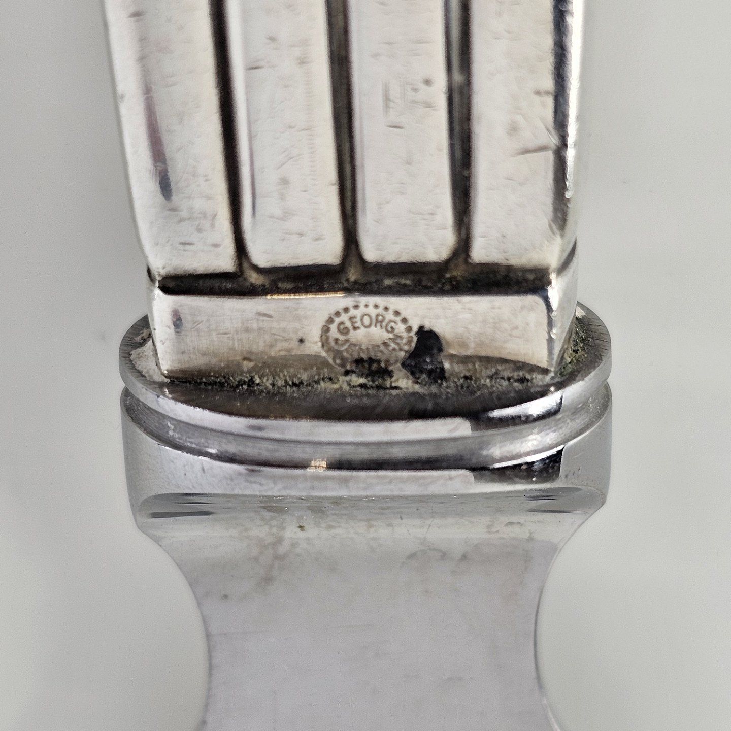 Bernadotte lagkagekniv i sterling sølv, med rustfrit stål skaft dekoreret med striber