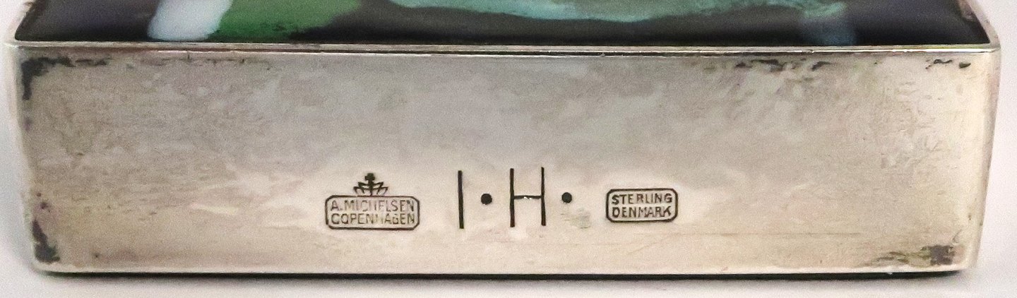 Michelsen. Briefbeschwerer aus Sterlingsilber mit Emaille (925). Inger Hanmann. Länge 13,2 cm. Breite 6 cm.