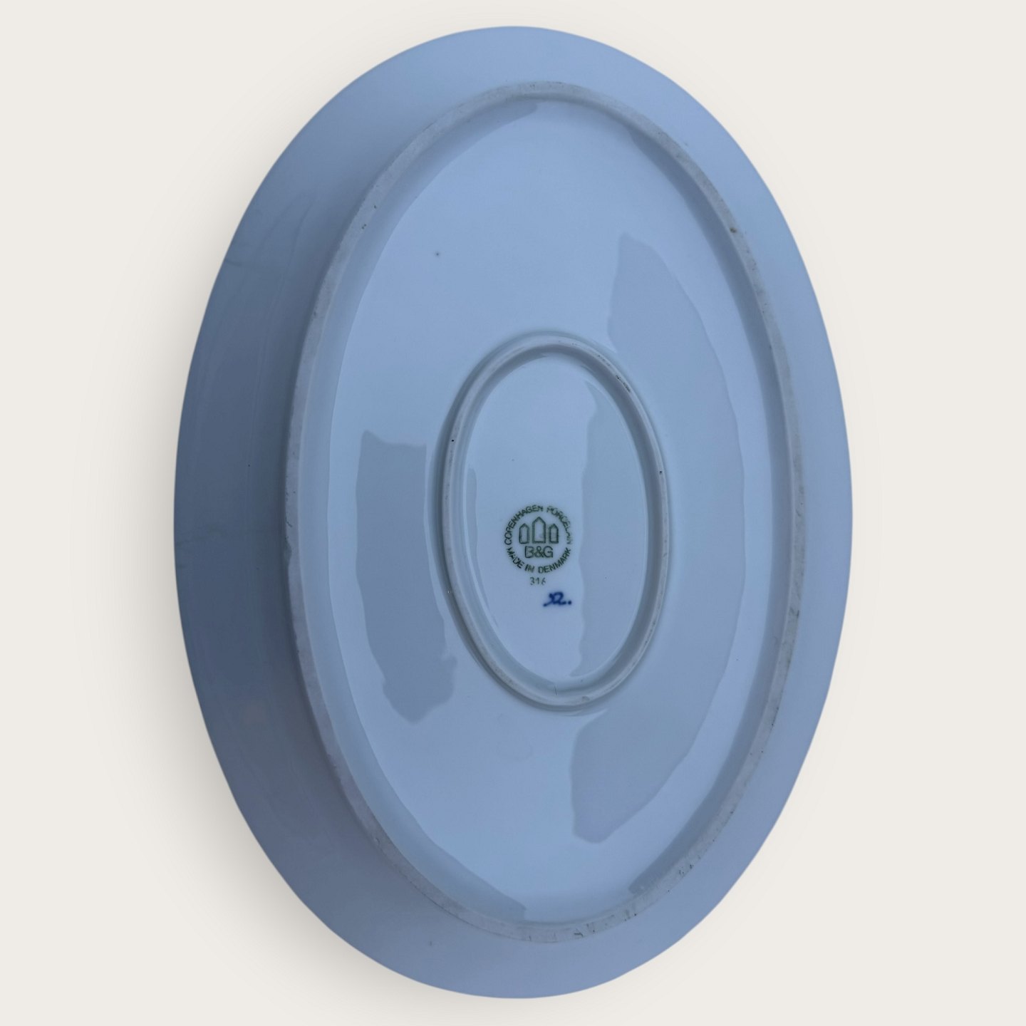 Bing & Grondahl, blau emailliert / musselmalet, Servierschale Nr. 316, 34 x 23,5 cm, 3. Wahl aufgrund eines kleinen Defekts am Bodenrand unter der Glasur (siehe Foto), ansonsten guter Zustand*