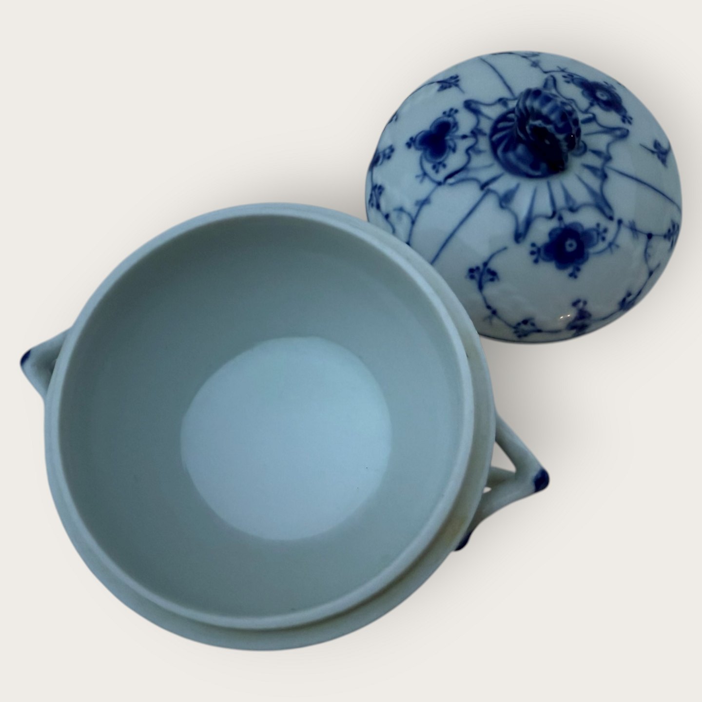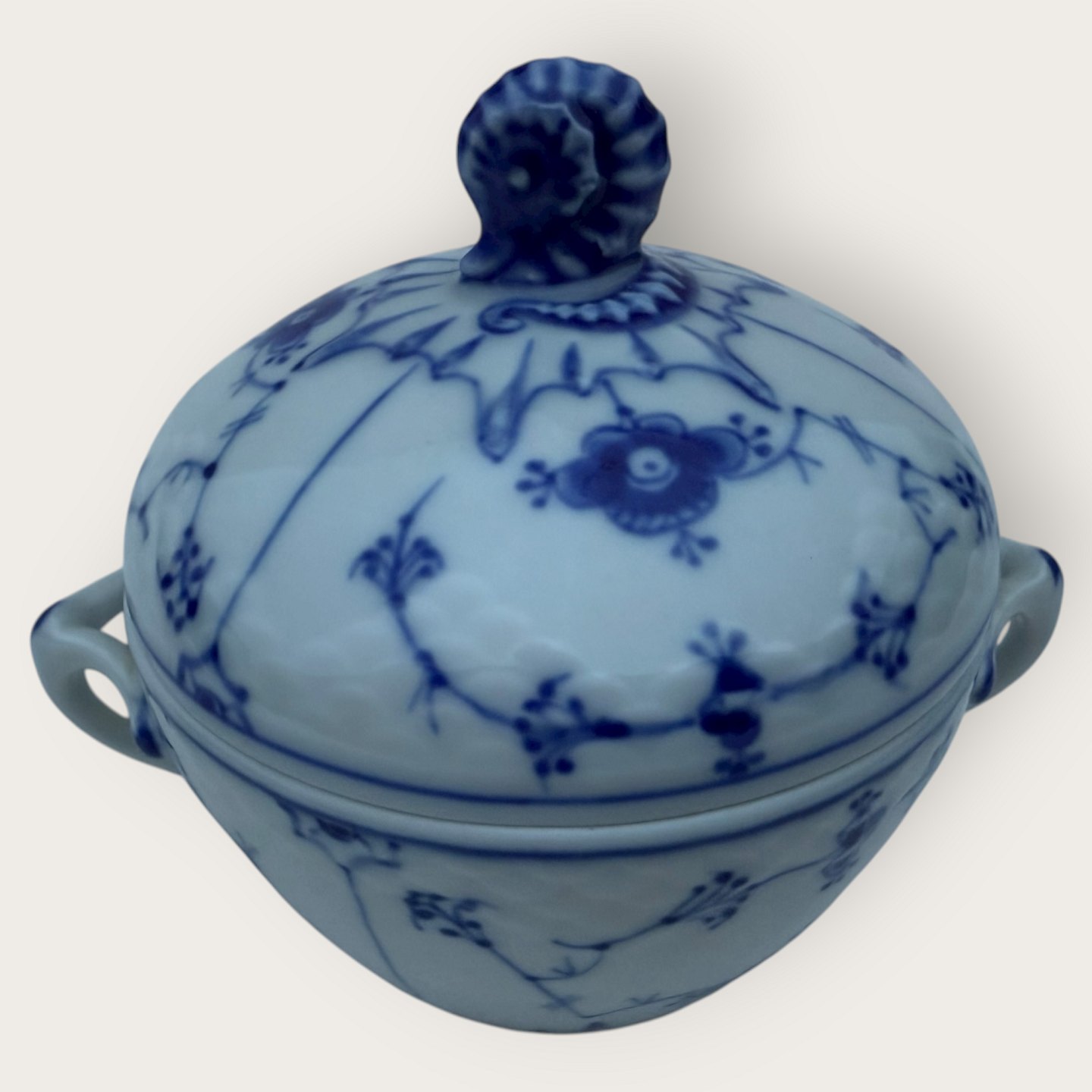 | Bing & Grondahl, Musselmalet / blau geriffelt, Zuckerdose Nr. 593, 12 cm breit, 10 cm hoch, 1. Wahl, *Perfekter Zustand*