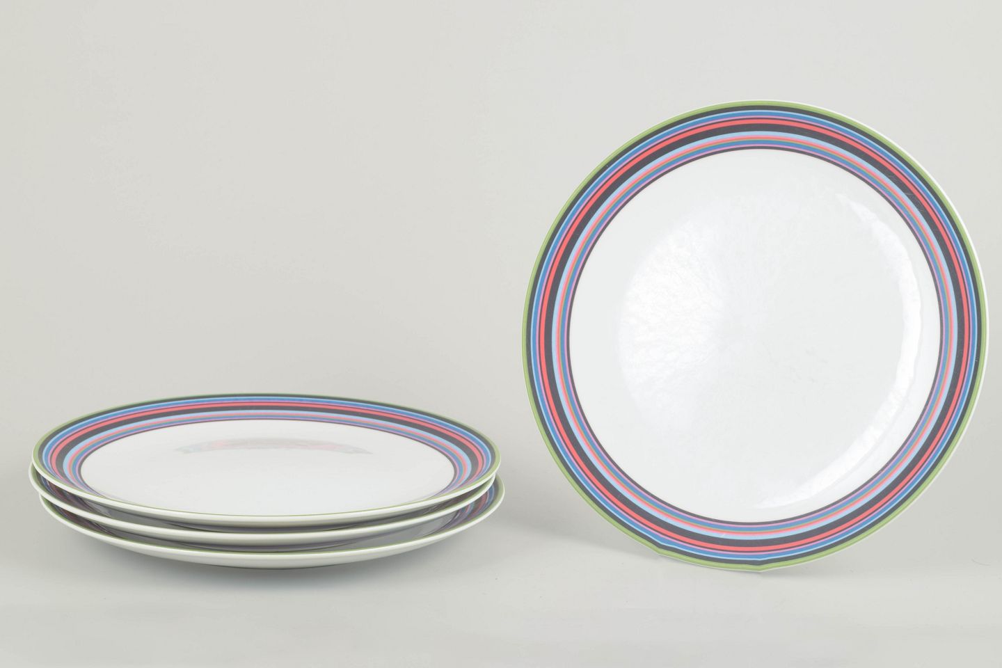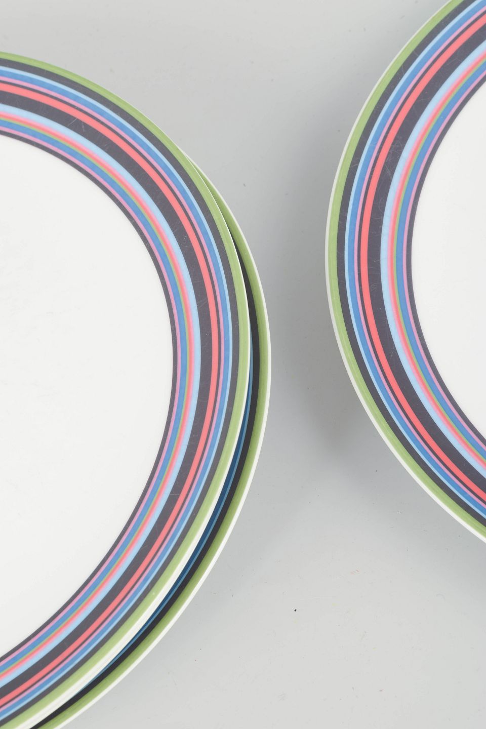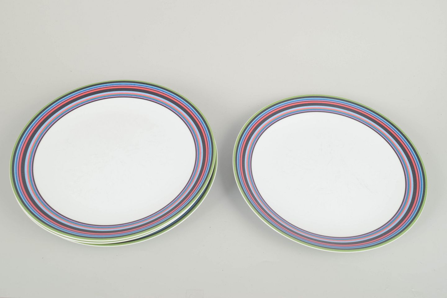 Sæt med fire store tallerkener i porcelæn med det karakteristiske flerfarvede stribemønster designet af Alfredo Häberli for Iittala. Serien kombinerer funktionalitet med legende farver og et tidløst formsprog, som har gjort den til en moderne klassiker inden for nordisk design.