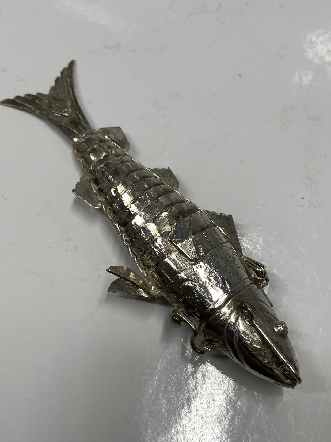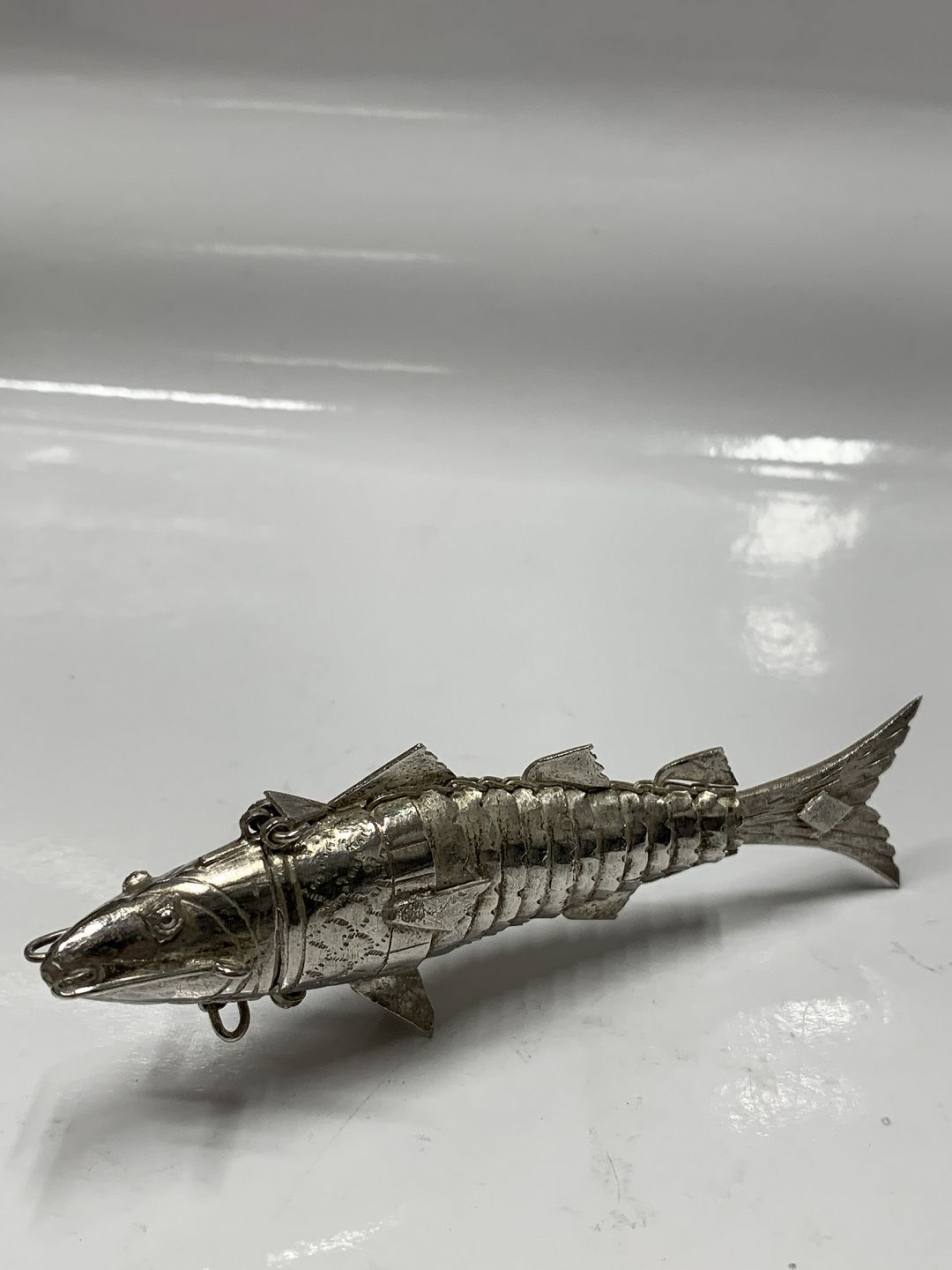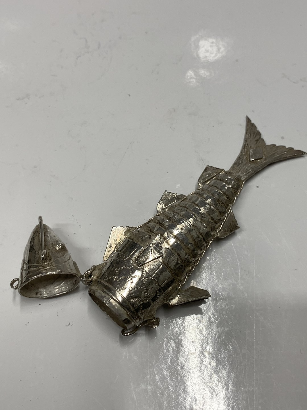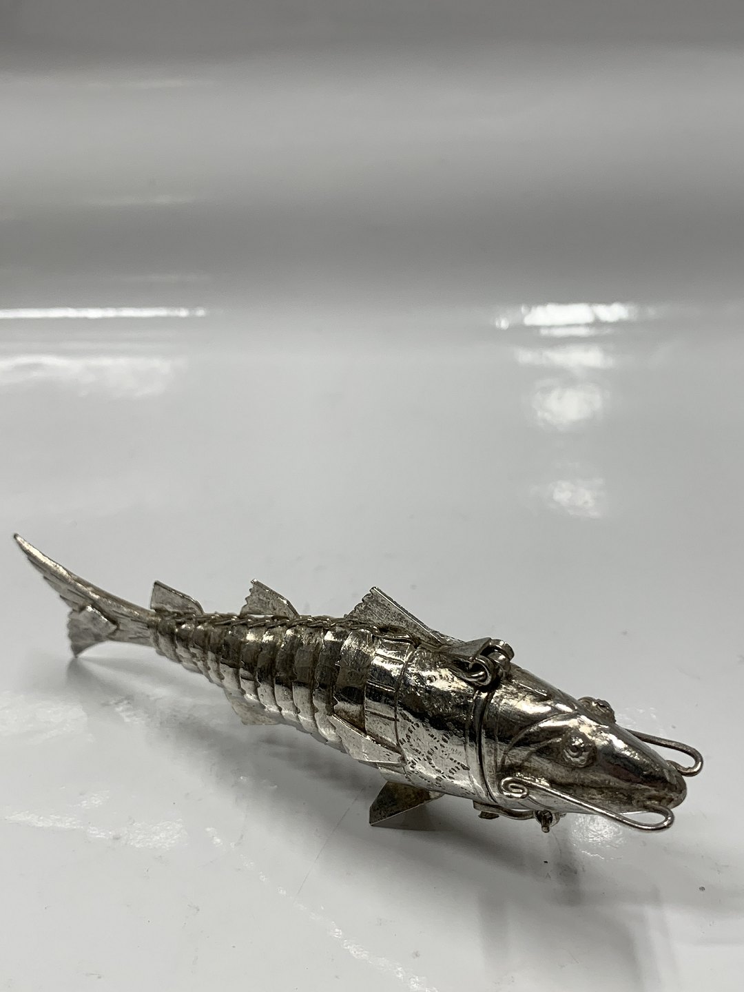 Sølv Hovedvandsæg i form af en fisk.