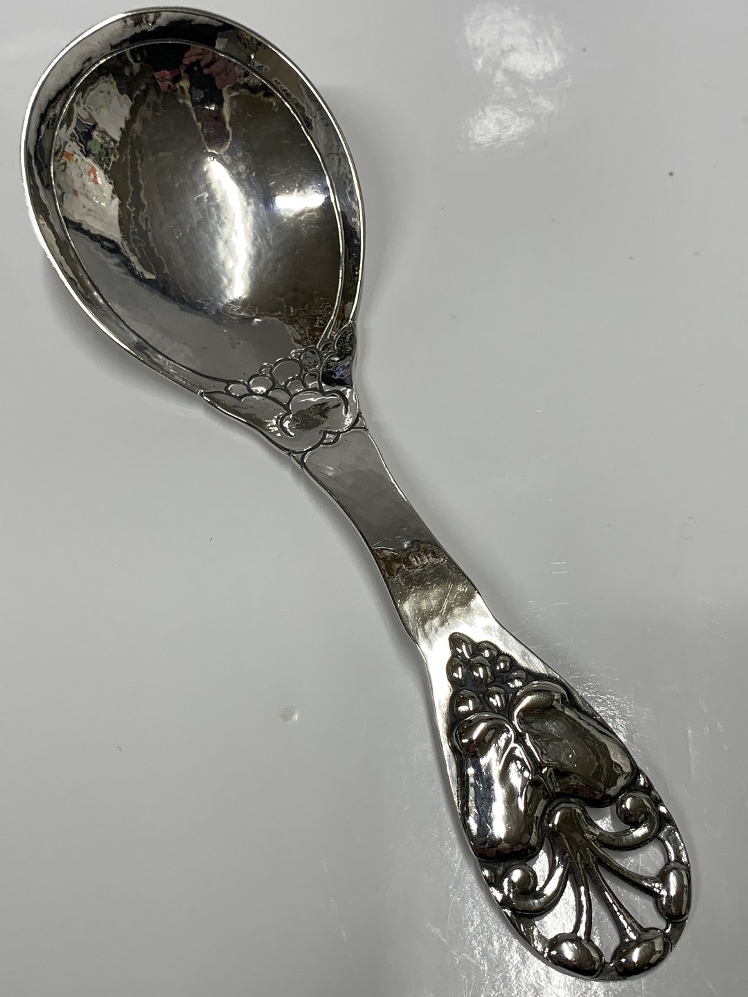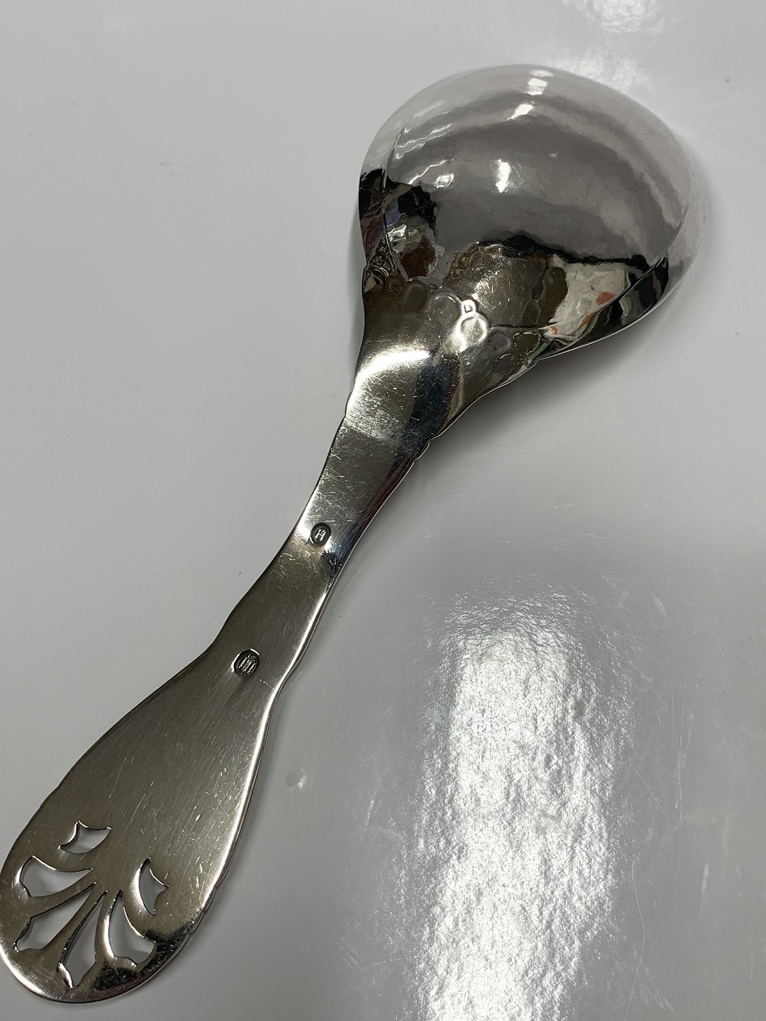 Serveringsske i hammerslået sølv