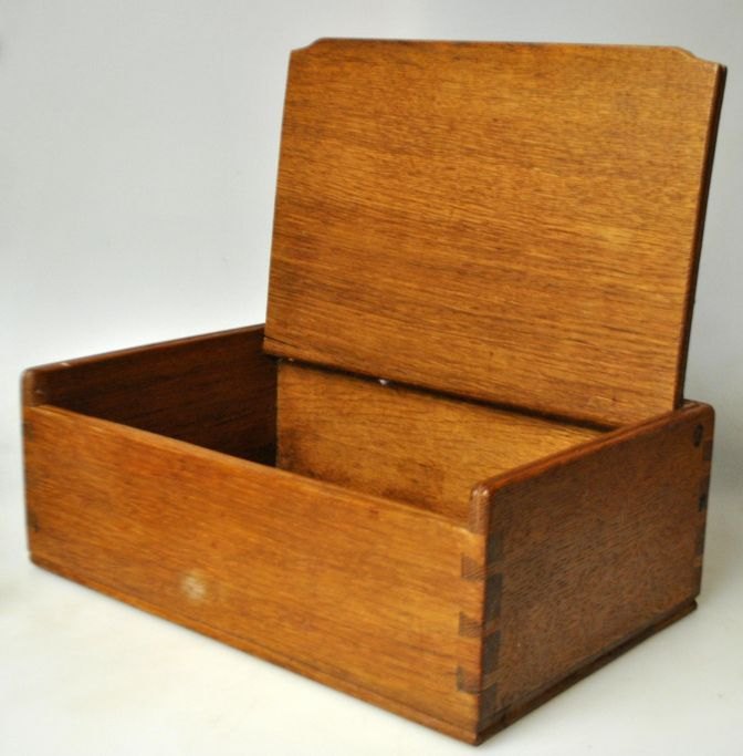Eine dänische Eichenschatulle mit Schnitzerei auf dem Deckel in Form eines Adelsabzeichens, 1940.