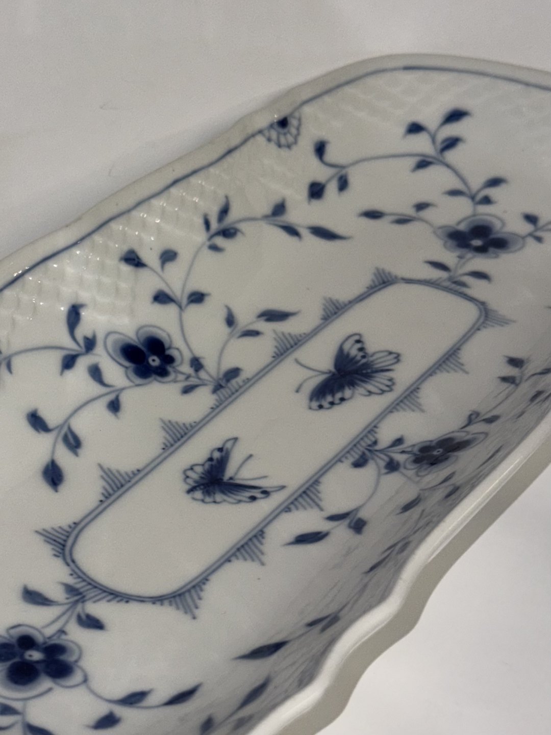 Bing & Grøndahl serveringsfad (Rouladefad) i porcelæn. Fremstår i god stand. Ingen skader eller reparationer. 2. sortering. Fabriksmærket på bunden. Modelnummer 205. Mål: 38 H. 4 cm L. 38 cm B. 14,5 cm.