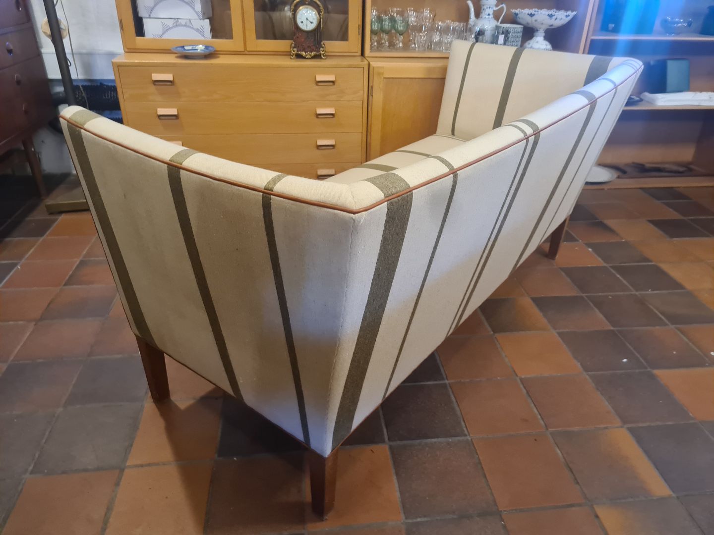 Text zugänglich auf Dänische: Grete Jalk overpolstret 2. Pers. Sofa model JH165 udført hos Snedkermester Johannes Hansen ca. 1960’erne.