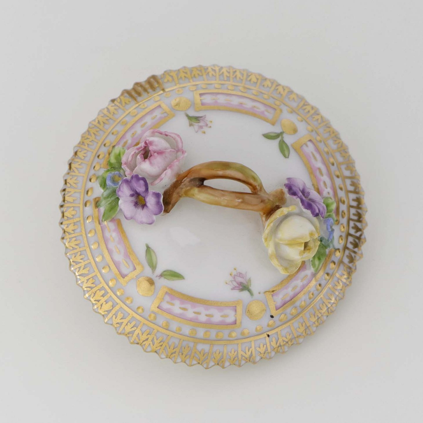 Låg til cremekop i porcelæn fra stellet Flora Danica. Nr 20/3514
