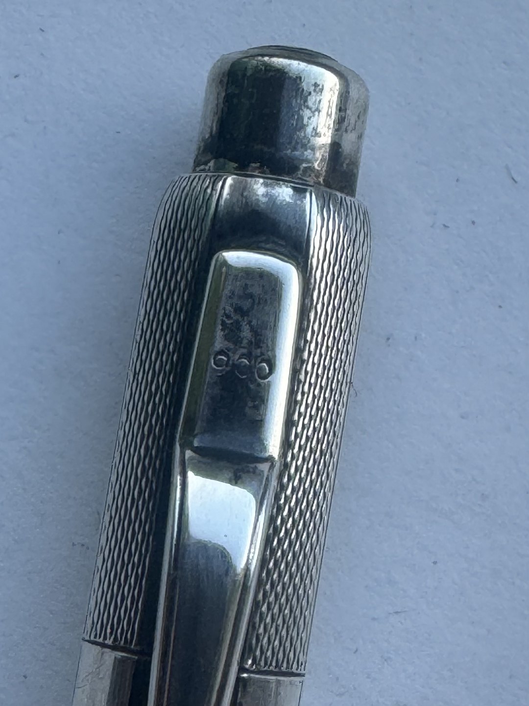 REN ART DECO STIL: Otte-kantet Montblanc Pix skrueblyant i sølv. Fremstår i god og funktionsduelig stand. Ingen skader. Fabiksmærket på siden. Sølvstemplet på clip’en (900). Længde: 11,8 cm