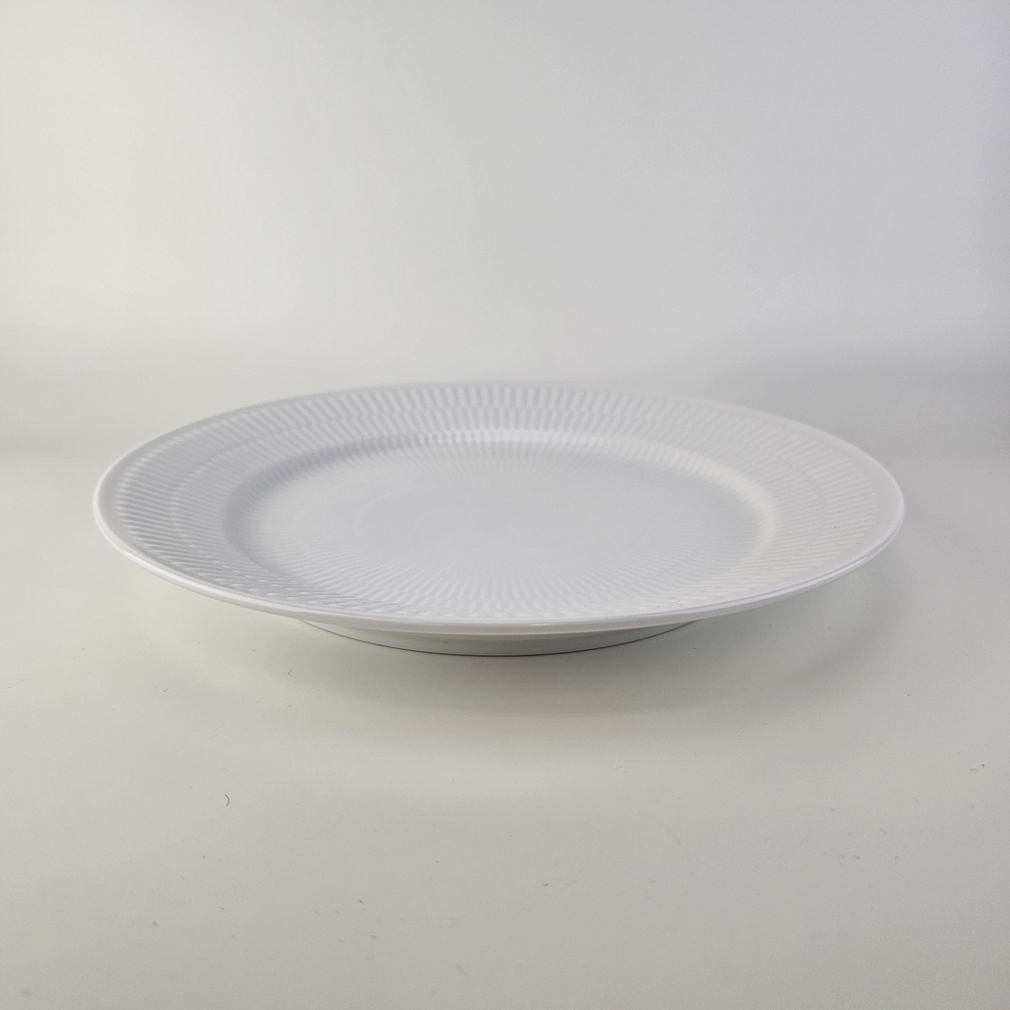 Flad middagstallerken i kongeligt porcelæn fra stellet Hvid Riflet