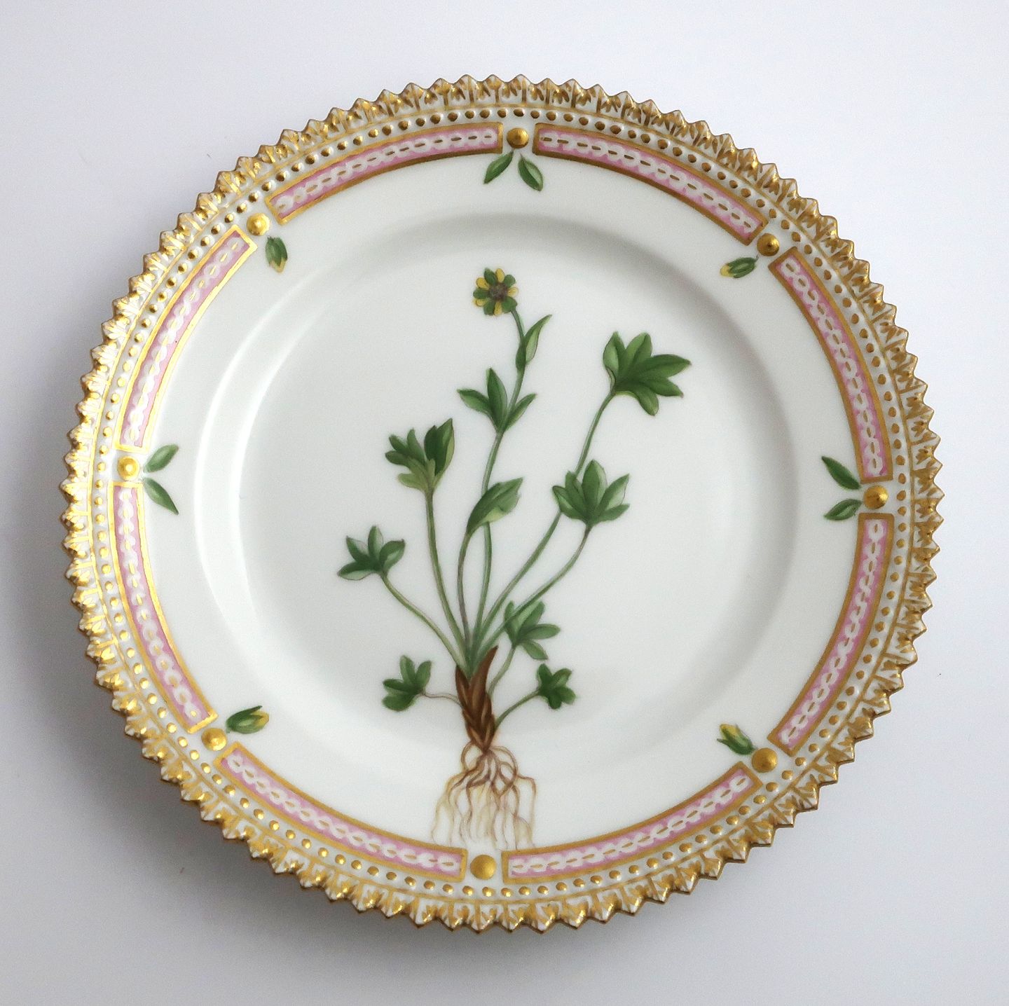 Royal Copenhagen Flora Danica. Kuchenteller. Entwurf # 3552. Durchmesser 14,5 cm. Ranunculus pygmaeus