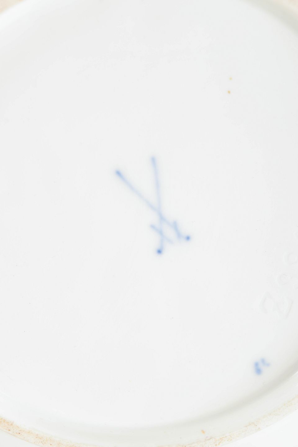 Meissen, grundlagt i 1710, er Europas ældste porcelænsfabrik og blev kendt for sine udsøgte reliefformer og rigt dekorerede rokokostilelementer gennem hele 1800-tallet. Kombinationen af håndmalet guld, blomstrede motiver og komplicerede relieframmer gør disse stykker særligt eftertragtede blandt samlere af historisk europæisk porcelæn.