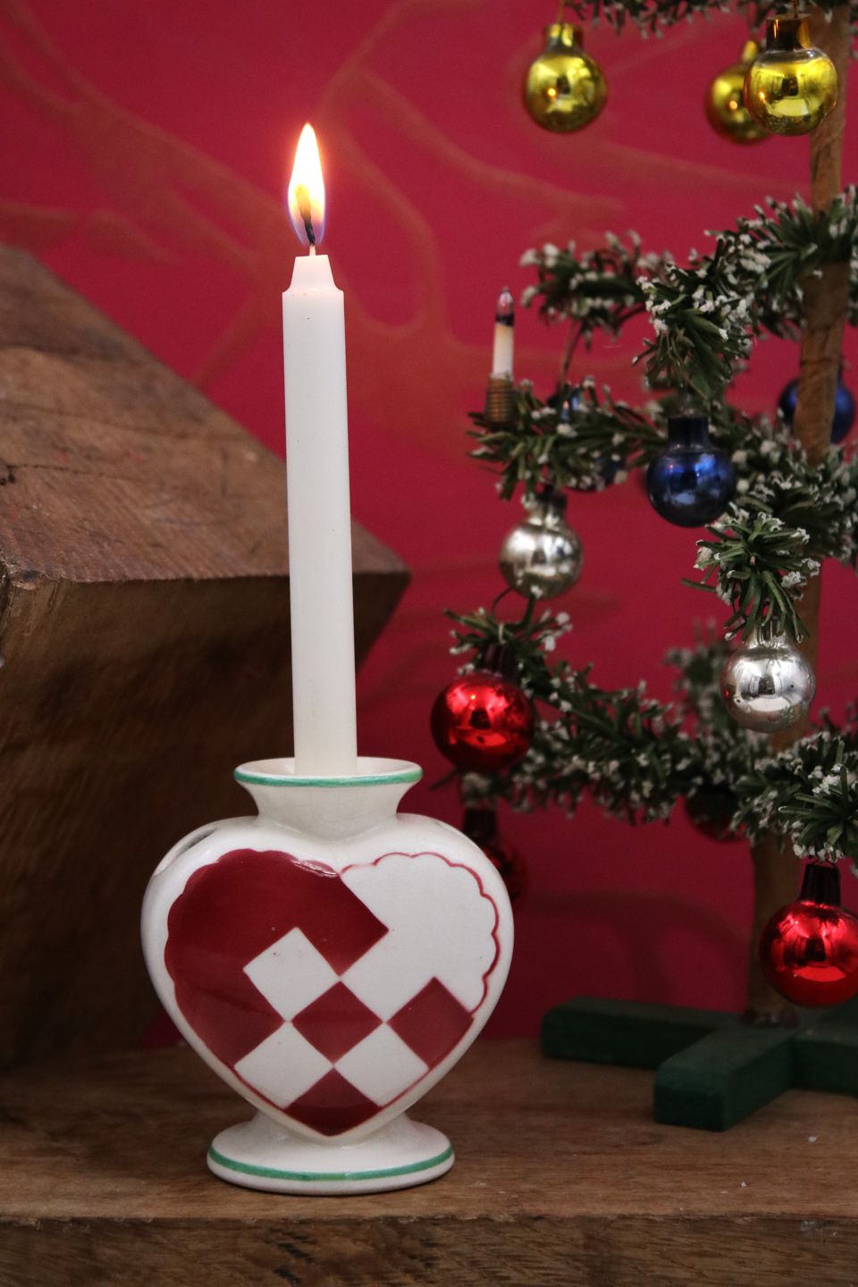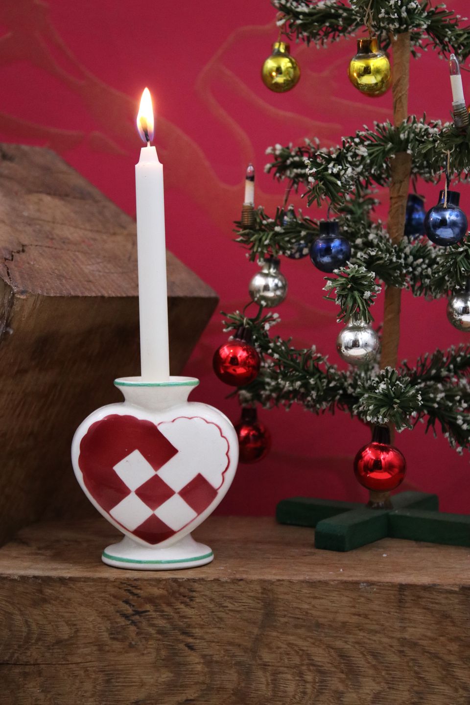 Gammelt rødt Aluminia fajance julehjerte til lille stearinlys.