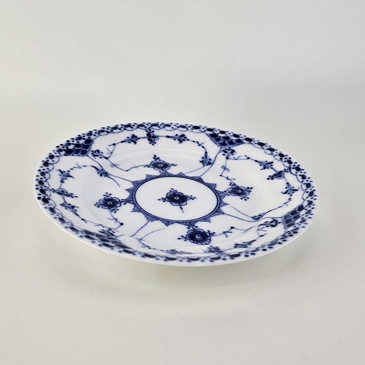Flad sidetallerken i kongeligt porcelæn fra stellet Musselmalet Halvblonde