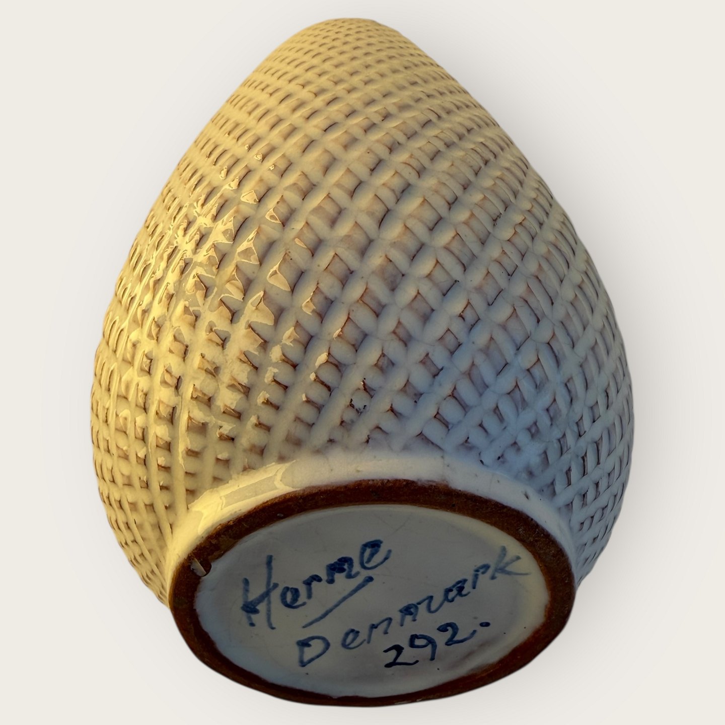 Herne Nielsen, Keramikvase mit weiß-kariertem Muster, Nr. 292, Höhe 18 cm, guter Zustand