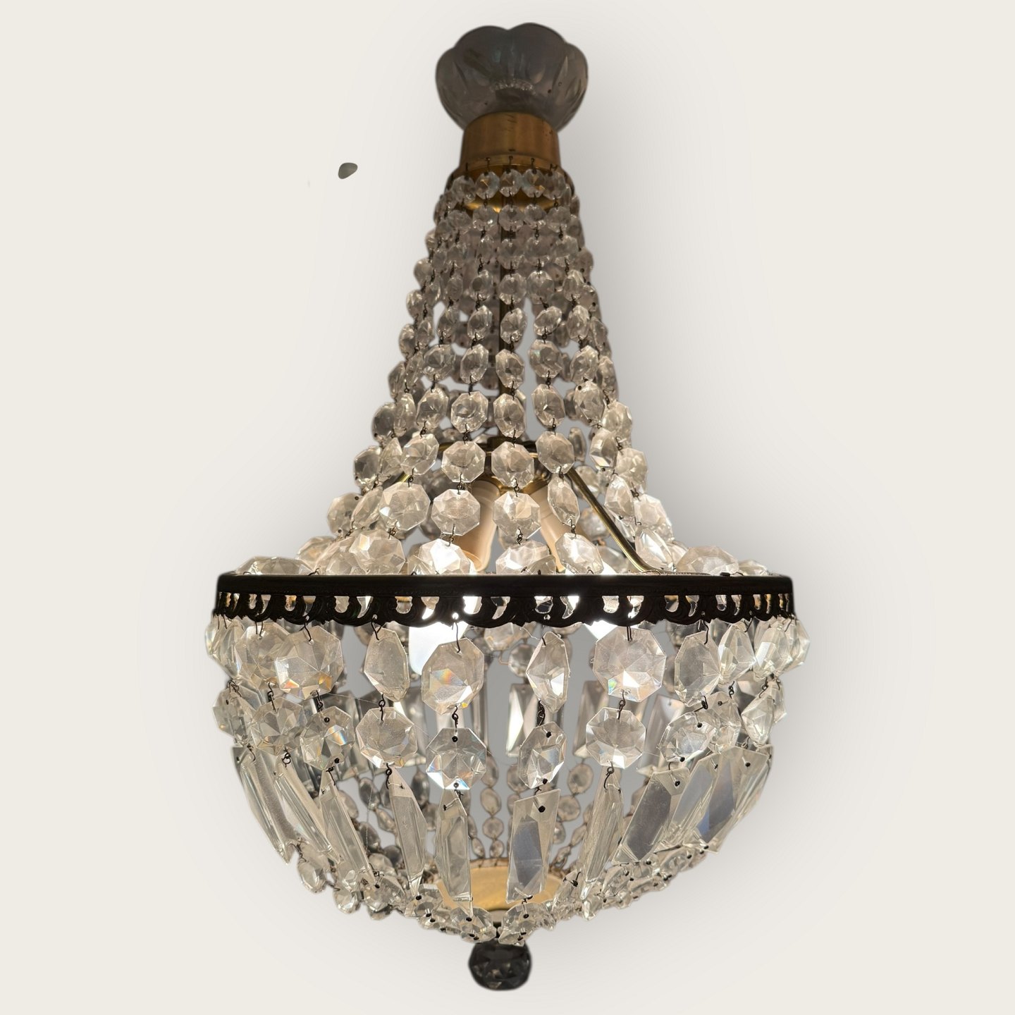 Kronleuchter mit Glasprismen, funktioniert einwandfrei und alle Prismen sind vorhanden und in gutem Zustand.