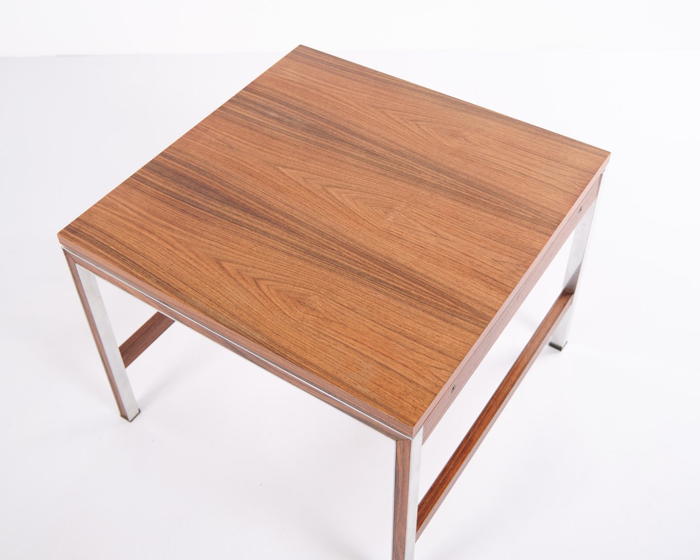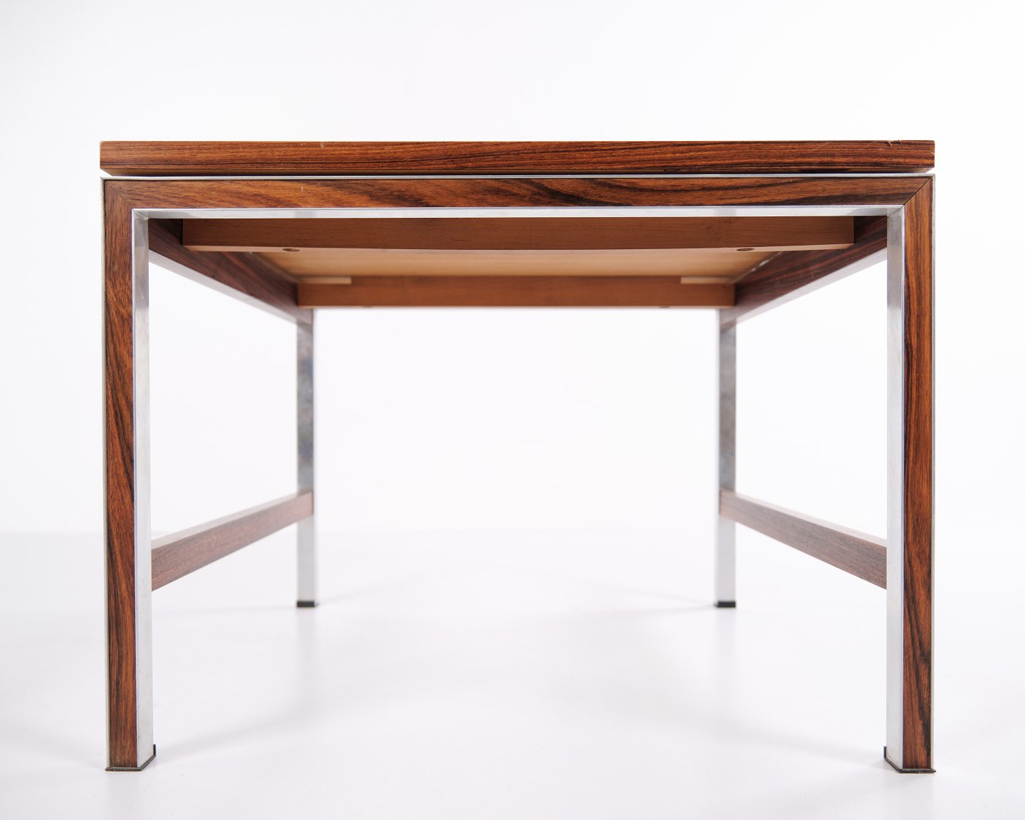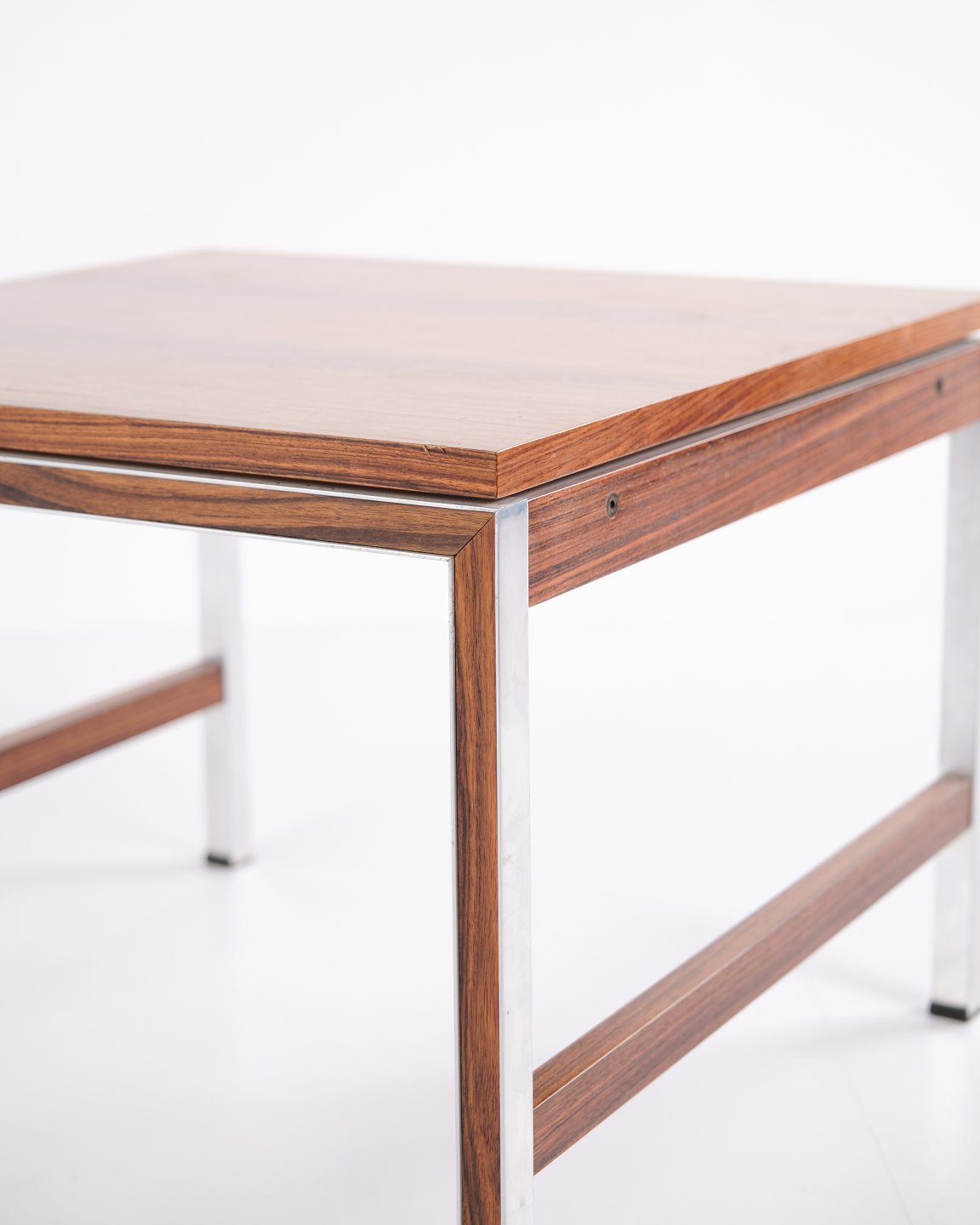 Beistell- oder Lampentisch aus den 1960er-Jahren, gefertigt aus Palisander mit Aluminiumdetails. Klassisches dänisches Design, geeignet als Sofa-, Lampen- oder Nachttisch.