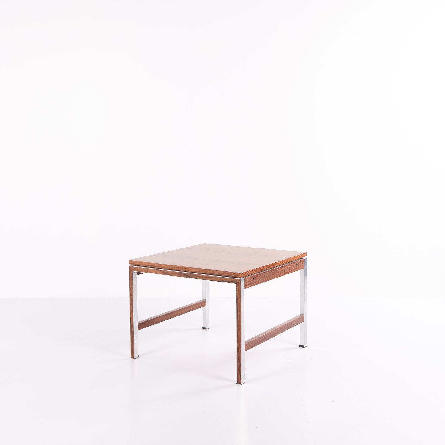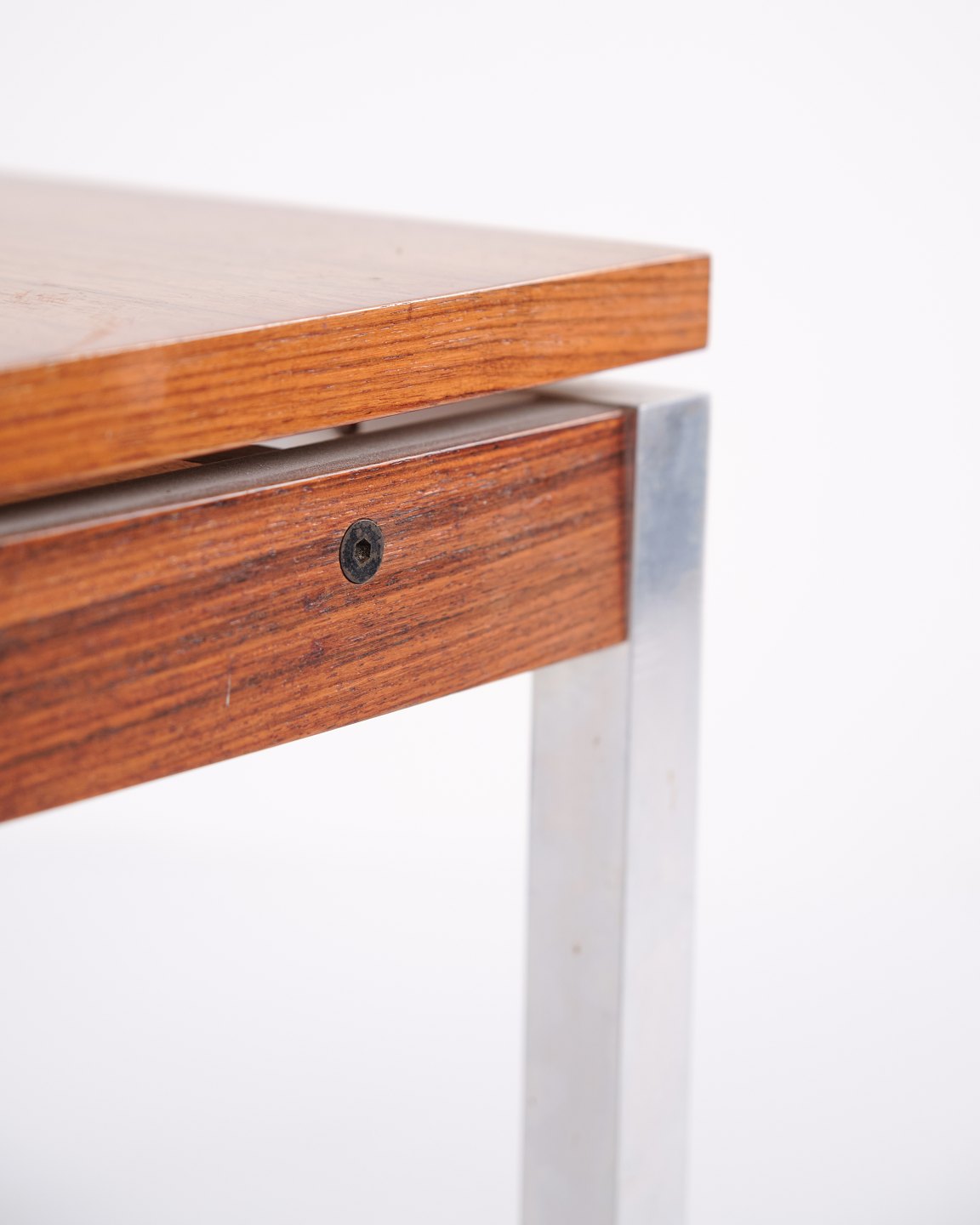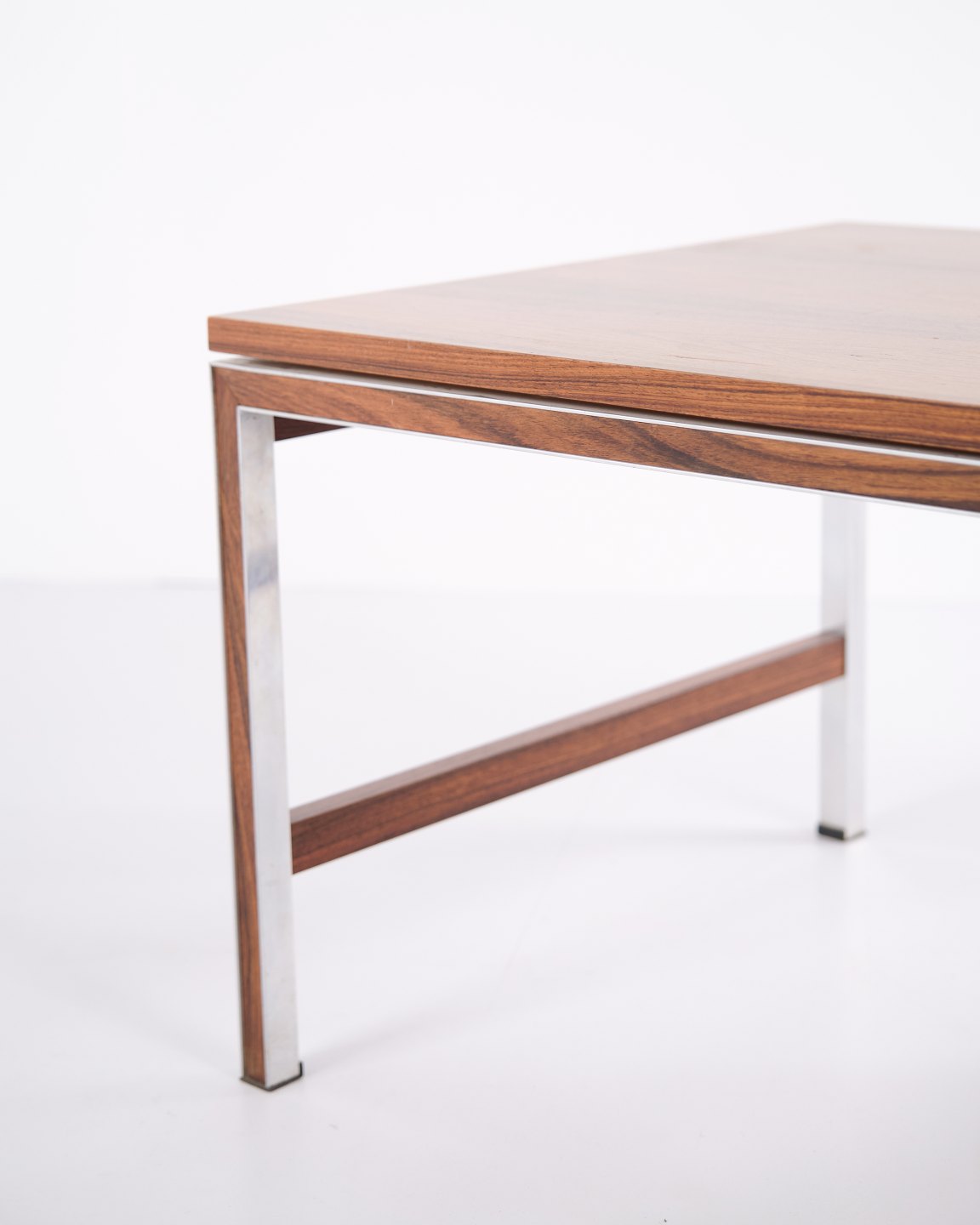 Beistell- oder Lampentisch aus den 1960er-Jahren, gefertigt aus Palisander mit Aluminiumdetails. Klassisches dänisches Design, geeignet als Sofa-, Lampen- oder Nachttisch.