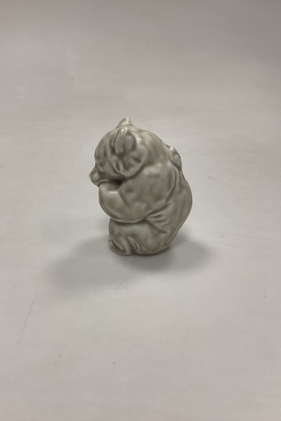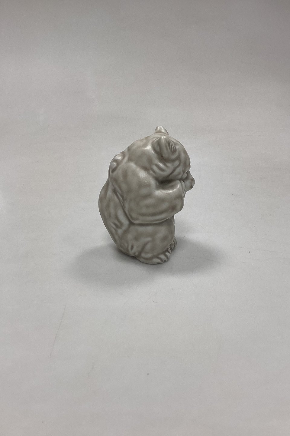 Royal Copenhagen Stentøjsfigur Hvid Bjørneunge No. 21435. Designet af Knud Kyhn. Mat glasur i hvidbeige nuancer.