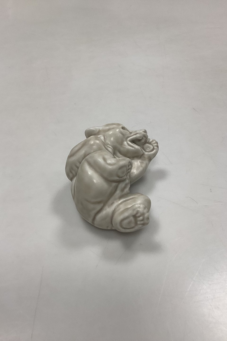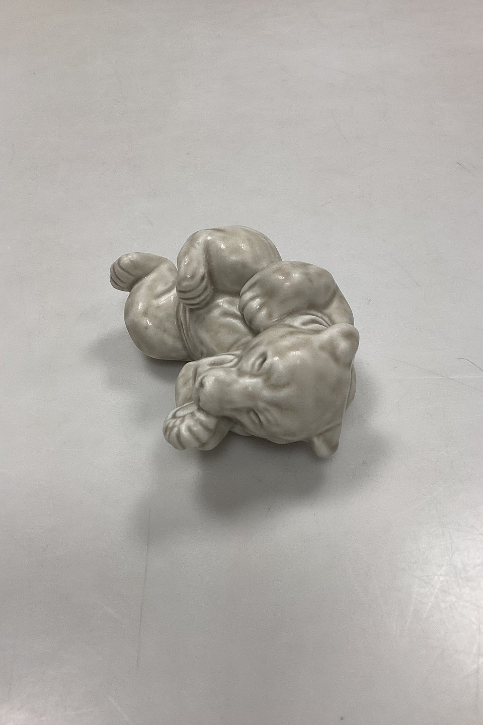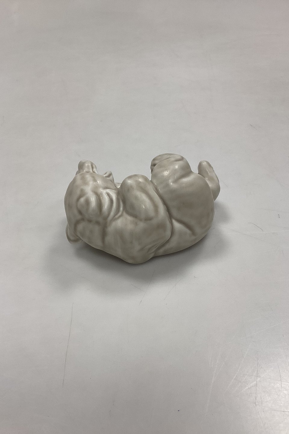 Royal Copenhagen Stentøjsfigur Hvid Bjørneunge No. 21432. Designet af Knud Kyhn. Mat glasur i hvidbeige nuancer.