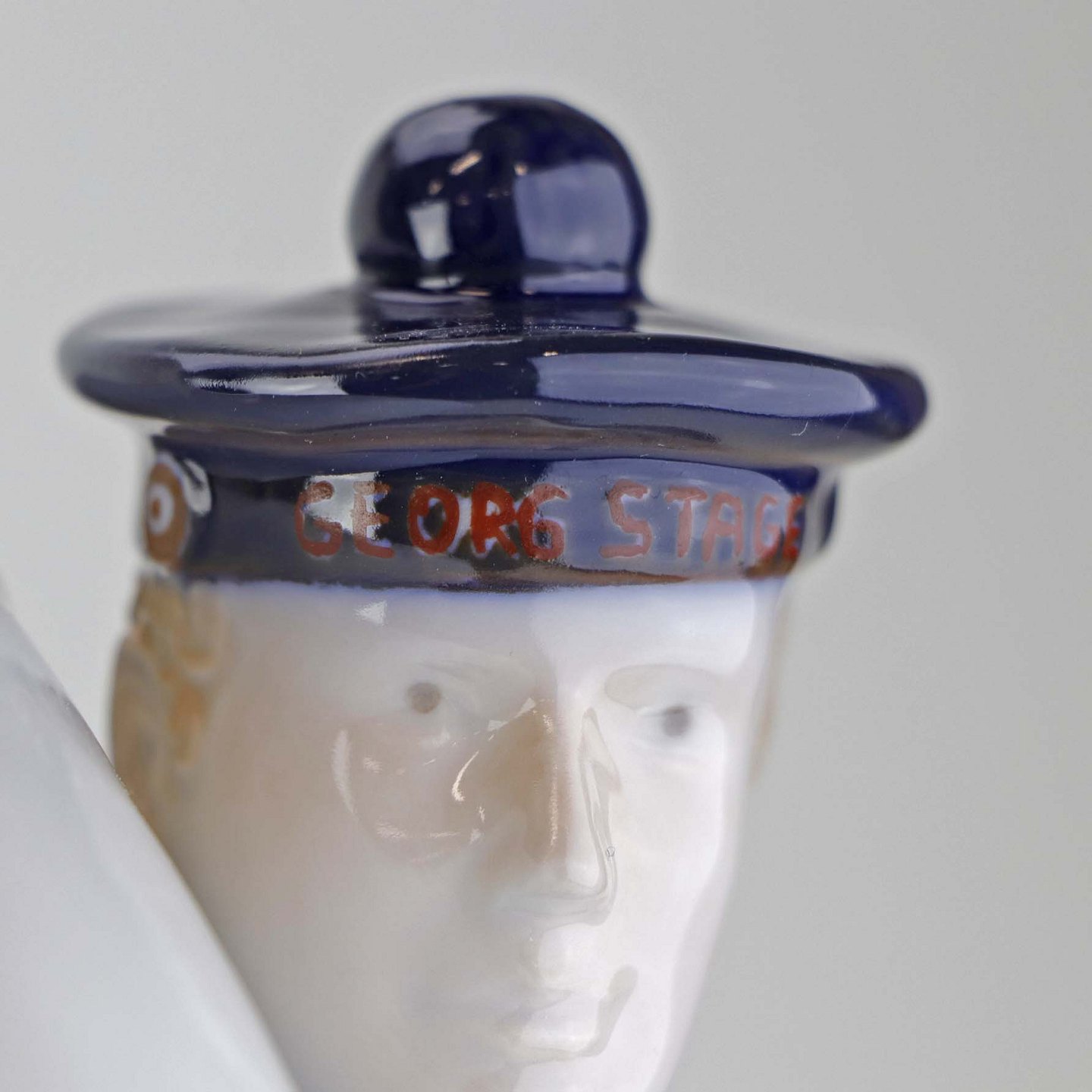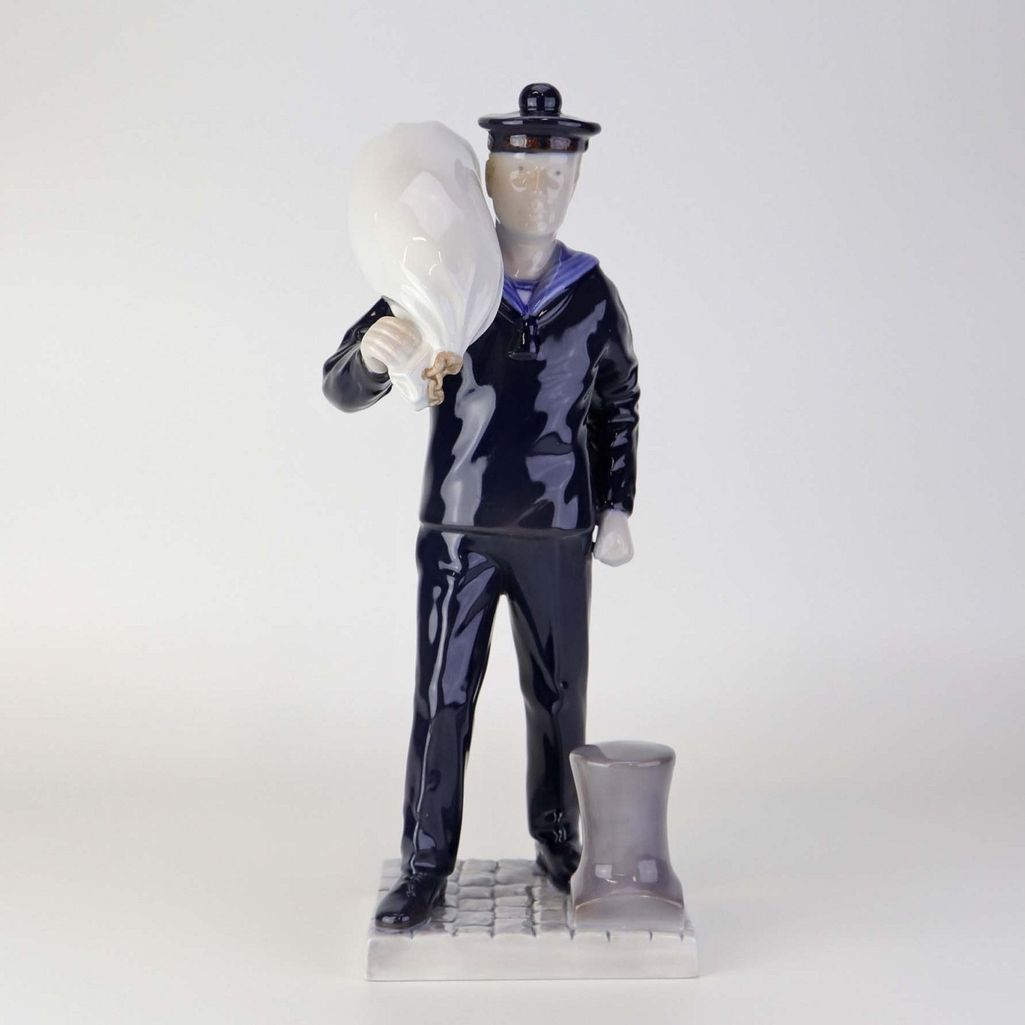 Text zugänglich auf Dänische: Figur i porcelæn med motiv af Matros med vadsæk fra skibet George Stage. Nr. 2456